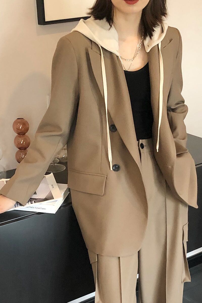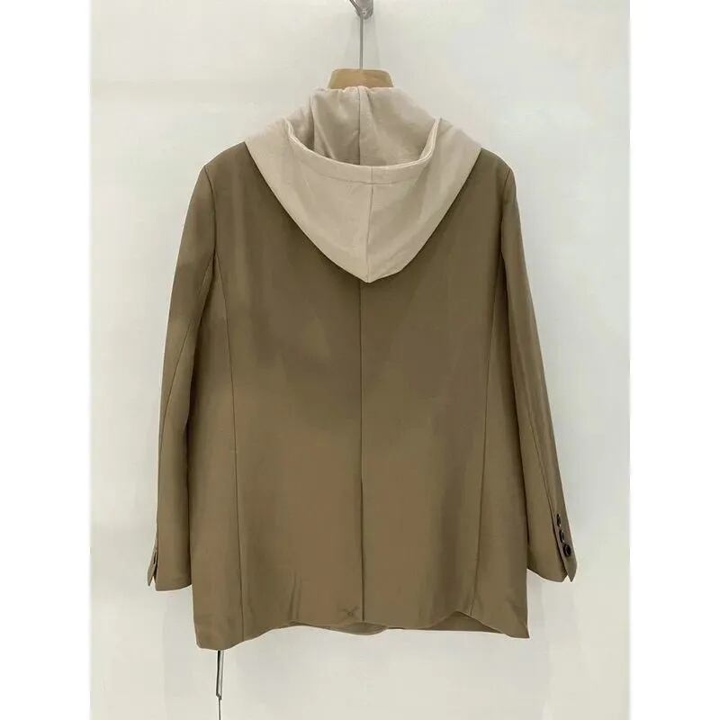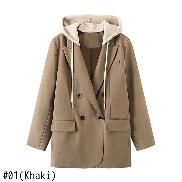 [EWQ] カーキ フード付き スーツ コート レディース トレンド ルーズ ステッチ コート 春 16Y4527 スプリング 春物