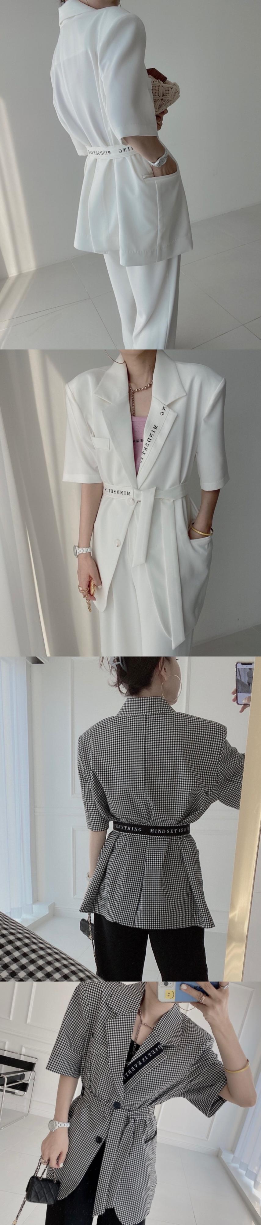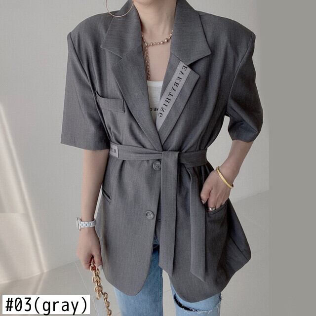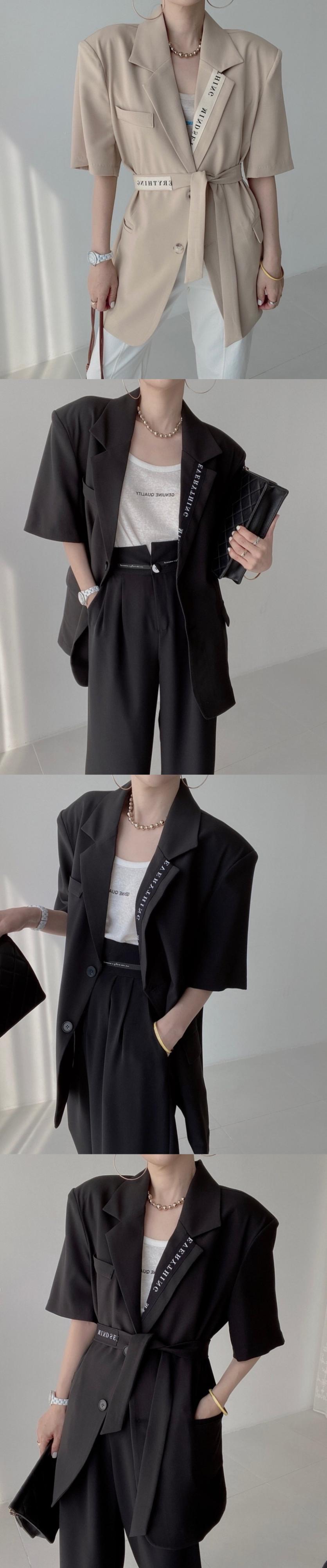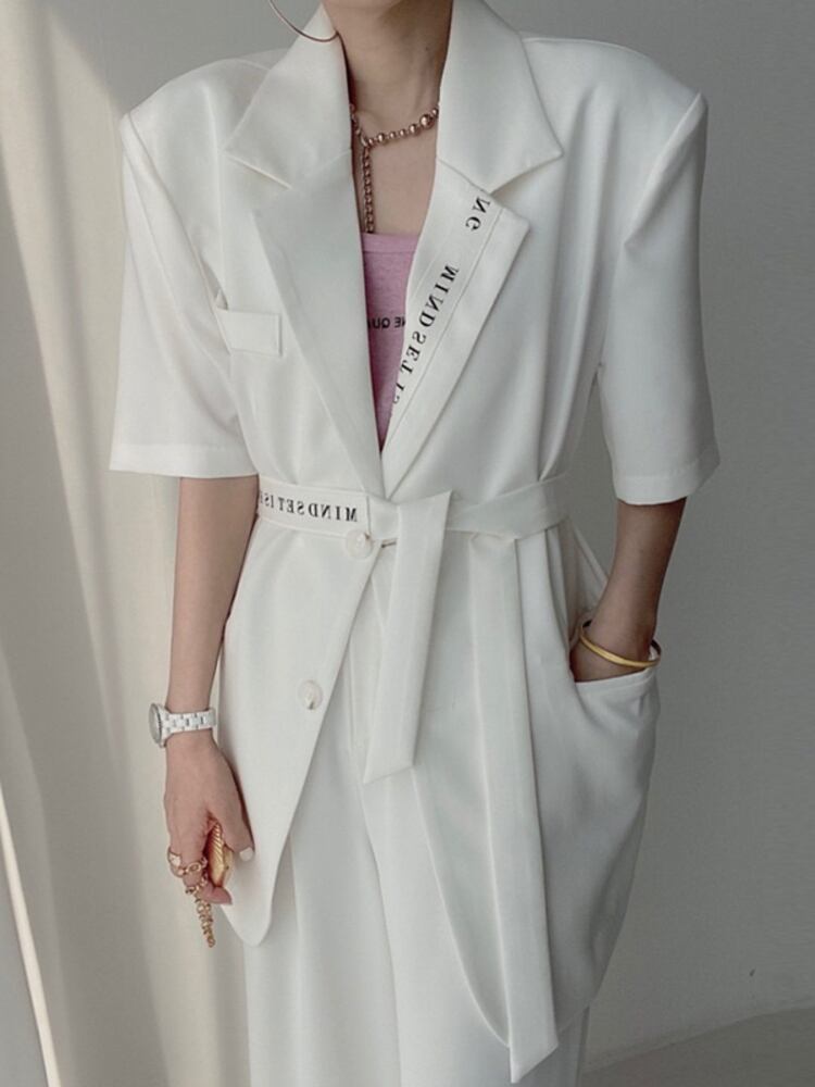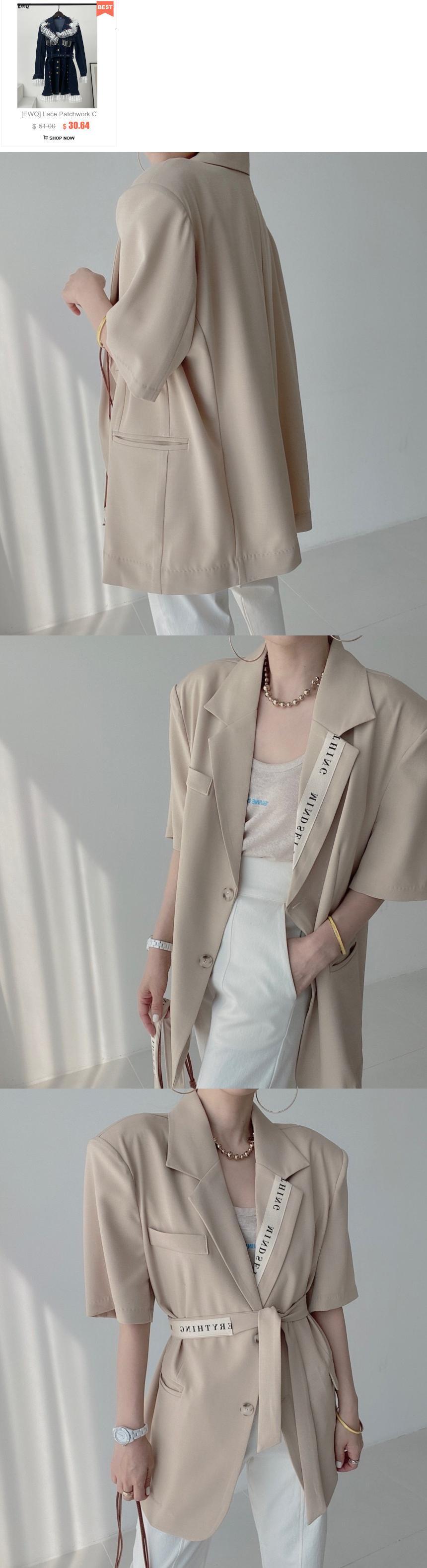 [EWQ] ラペルレターレースアップブレザーコート半袖スーツジャケット夏シングルブレストトップ 7414 ショート ハーフスリーブ サマー 夏物