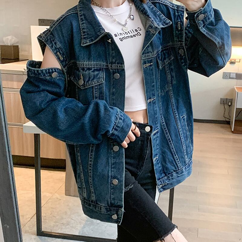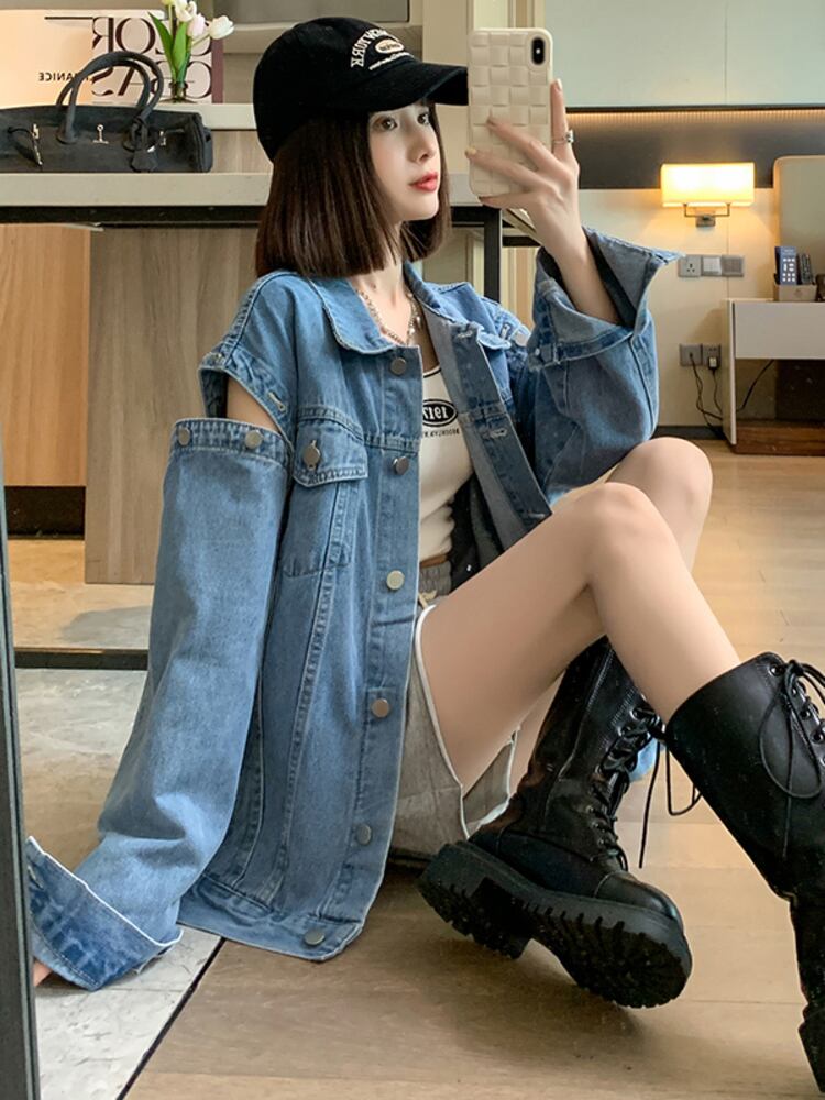 【EWQ】レディース デタッチャブル デニム スプリング ジャケット ルーズ シングル ブレスト ポケット コート レディース 春物