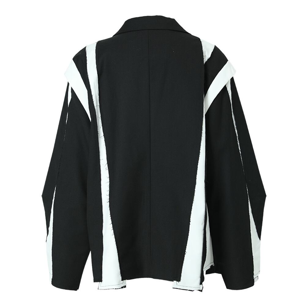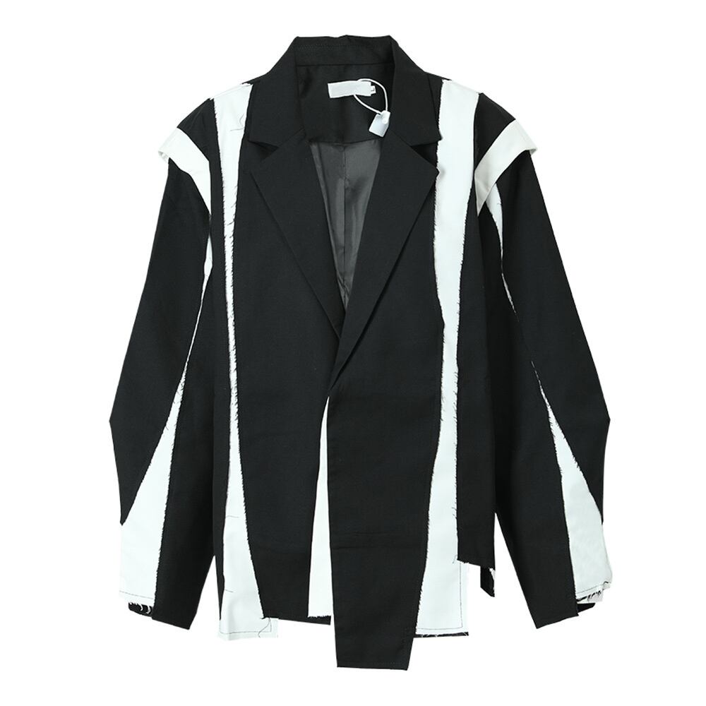 【EWQ】ブラック コート イレギュラー カラーブロック ビッグサイズ ブレザー ラペル 長袖 ジャケット 潮 秋 春 レディース ロング スプリング 春物 オータム 秋物
