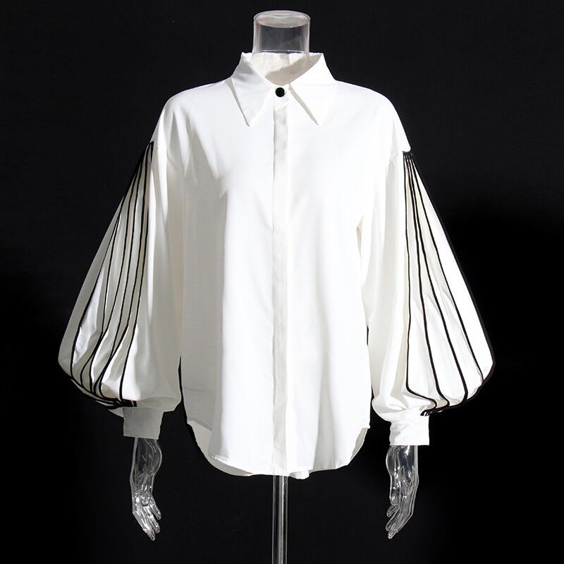 【EWQ】春秋ランタンスリーブプリーツルーズブルサ レディース スプリング 春物 オータム 秋物