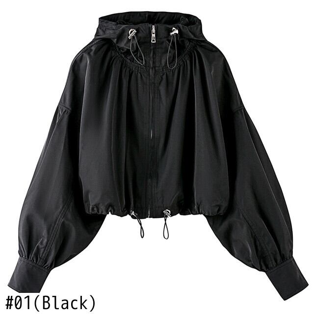 [EWQ] 春シンプル黒フード付き巾着ジッパー ジャケットゆったり長袖ショート コート 16R2042 ロング ブラック スプリング 春物