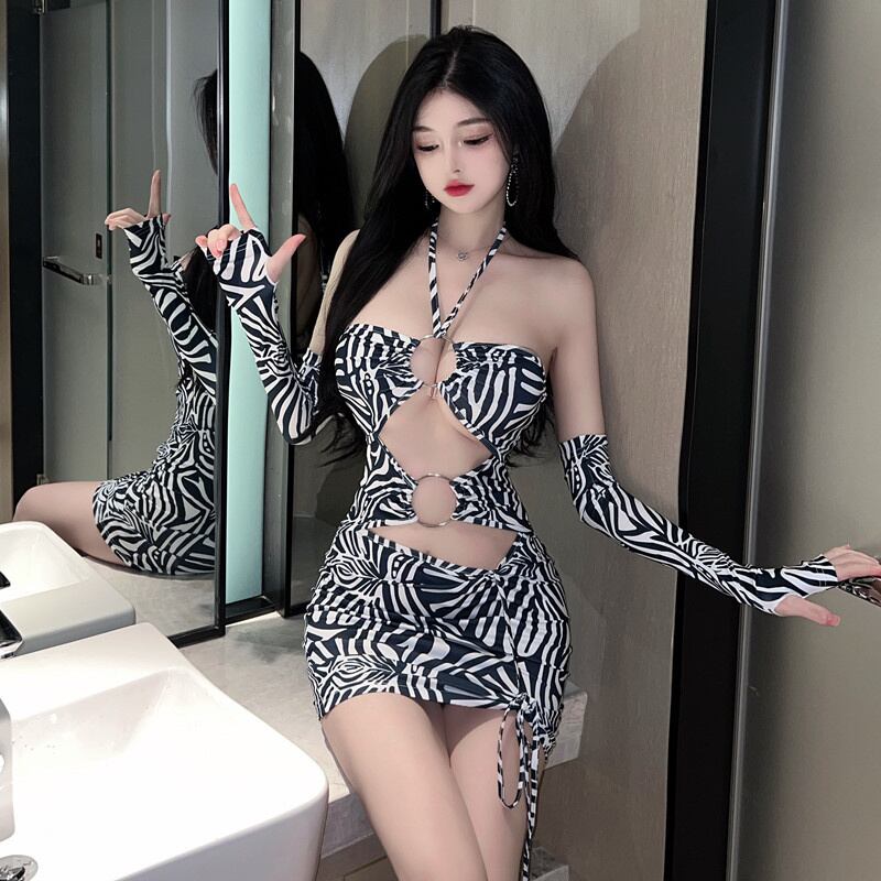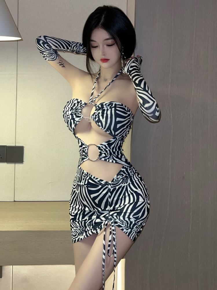 [EWQ] カラー コントラスト ストライプ ワープ ドレス ホルター中空アウト セクシーミニ ドレス春夏レースアップ Vestido スプリング 春物 サマー 夏物