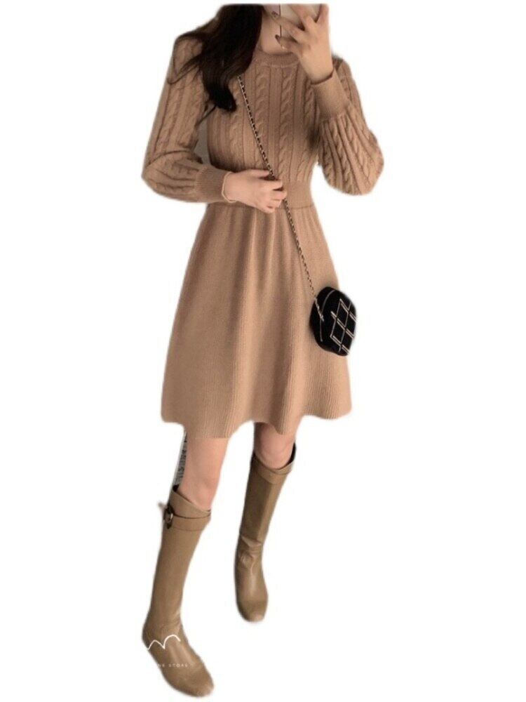 [EWQ] ニットドレス長袖イブニングパーティー Vestido 春秋セーター A ラインドレス Rode 16Y6185 ロング スプリング 春物 オータム 秋物 Aライン
