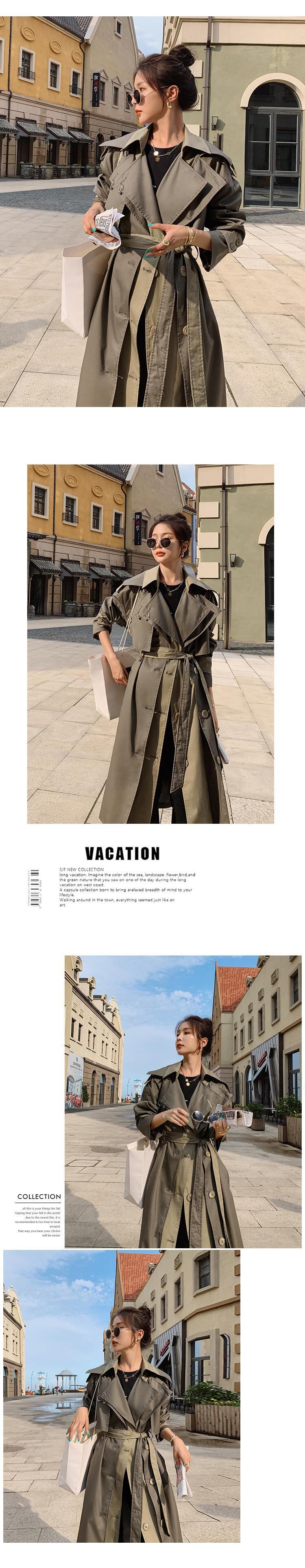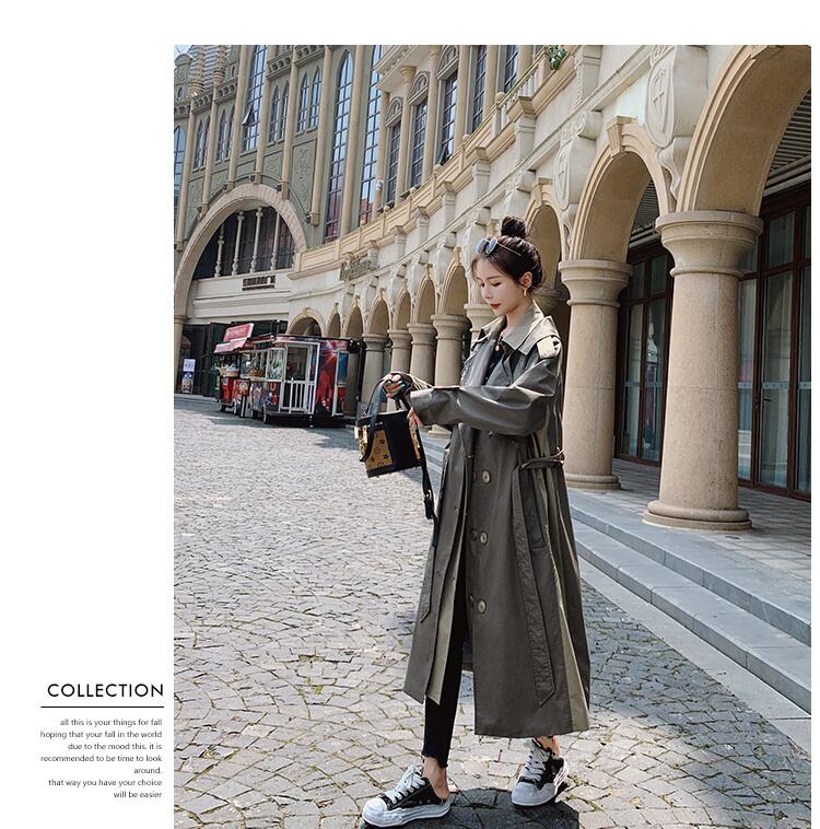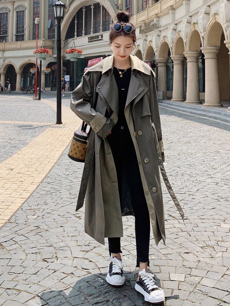 【EWQ】長袖 レディース ウインドブレーカー シンプル ダブルカラー スプリングシック トレンチコート アウター ウインドブレーカー ロング 春物