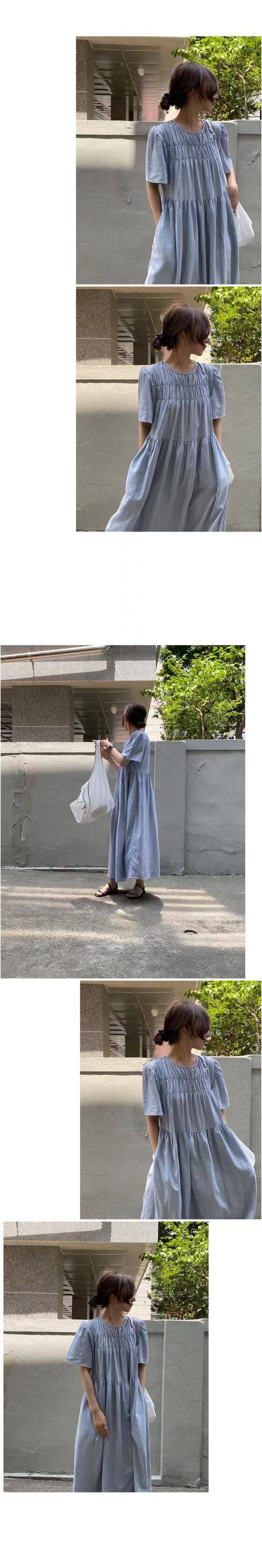 [EWQ] ソフト O ネック シャーリング ドレス無地半袖ルーズ ドレス春夏 Vestido 6Y6945 ショート ハーフスリーブ スプリング 春物 サマー 夏物 Oネック ソリッドカラー