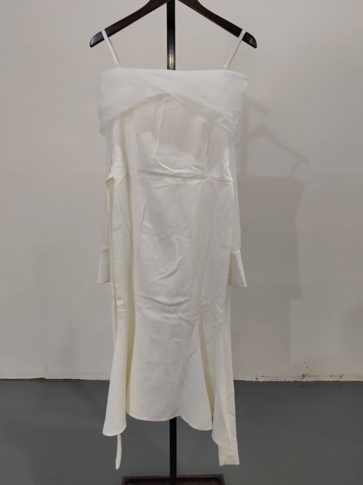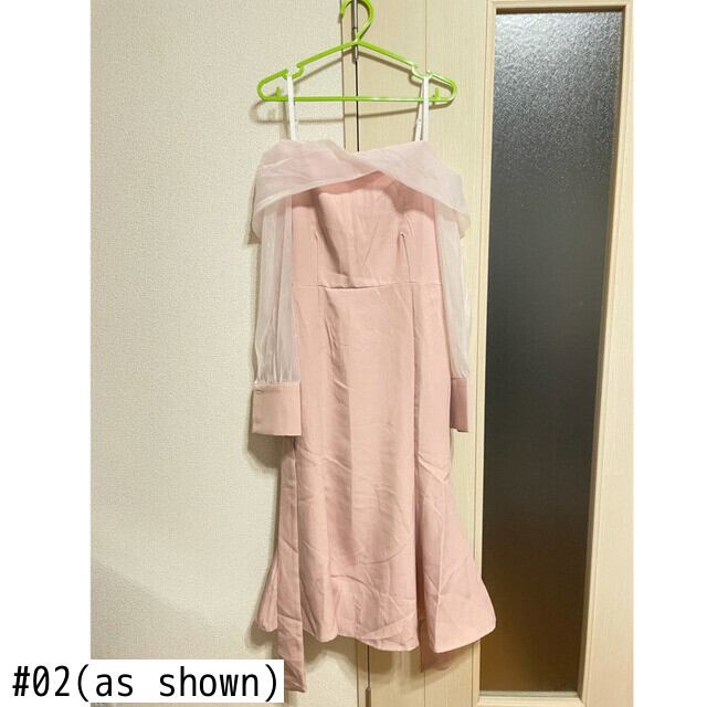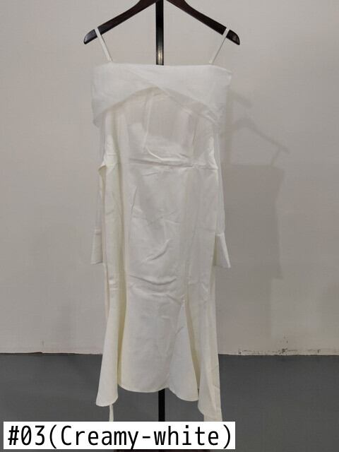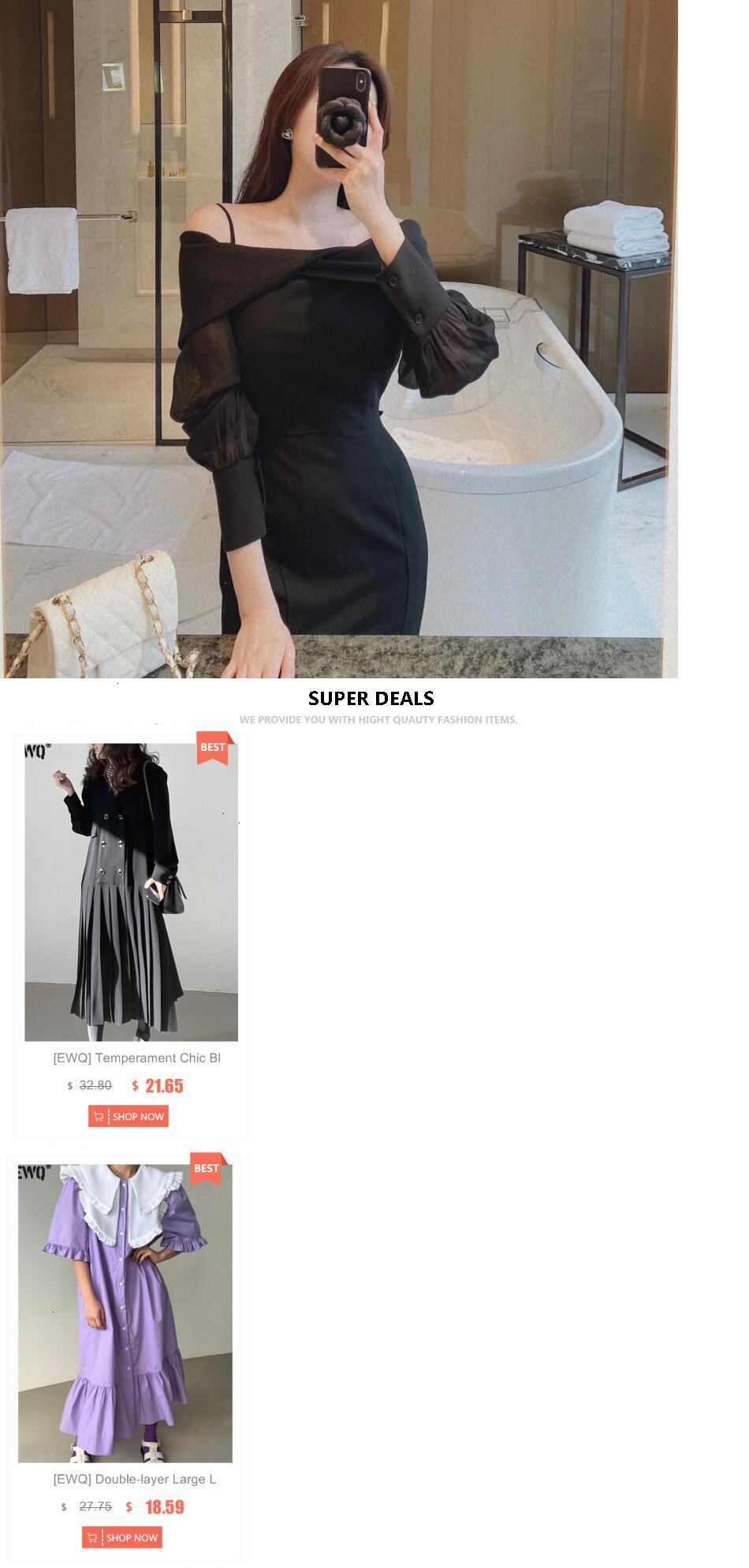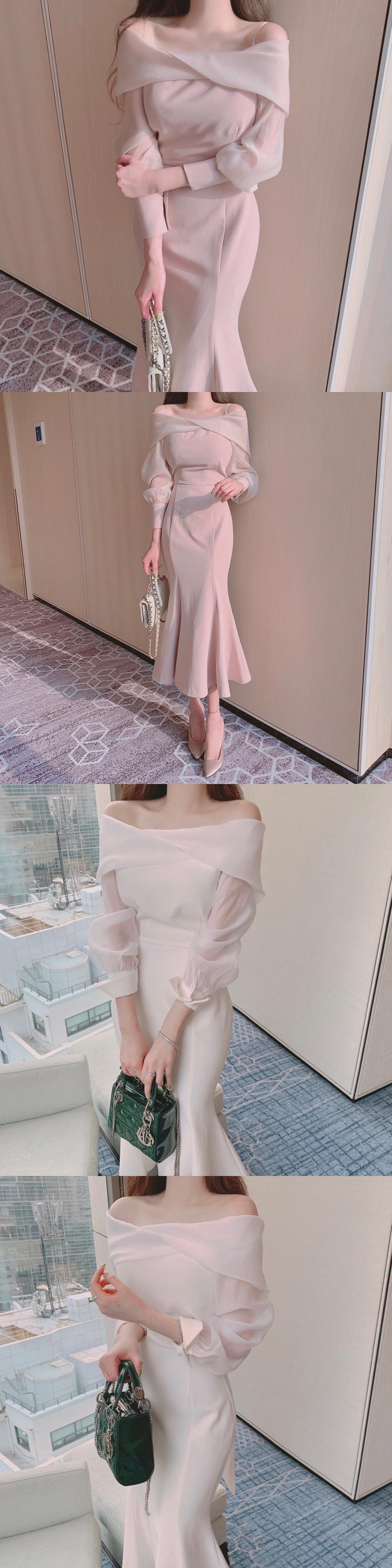 [EWQ] 気質セクシースラッシュ襟スリング裸肩パフスリーブミッドカーフフィッシュテイルドレス秋潮 16R1383 オータム 秋物