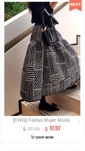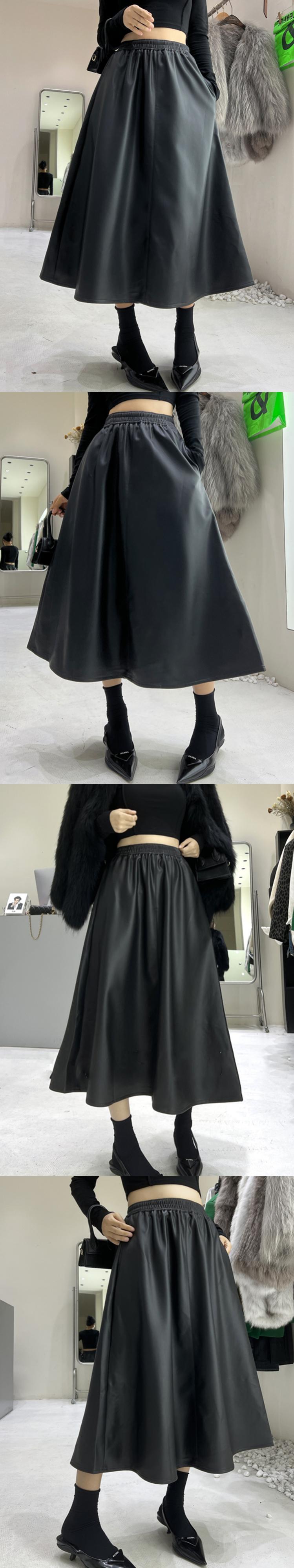[EWQ] プリーツ PU レザー スカート春秋レジャー ブルー ウエスト ルーズ A ライン ミディ スカート 10AB5270 スプリング 春物 オータム 秋物 Aライン