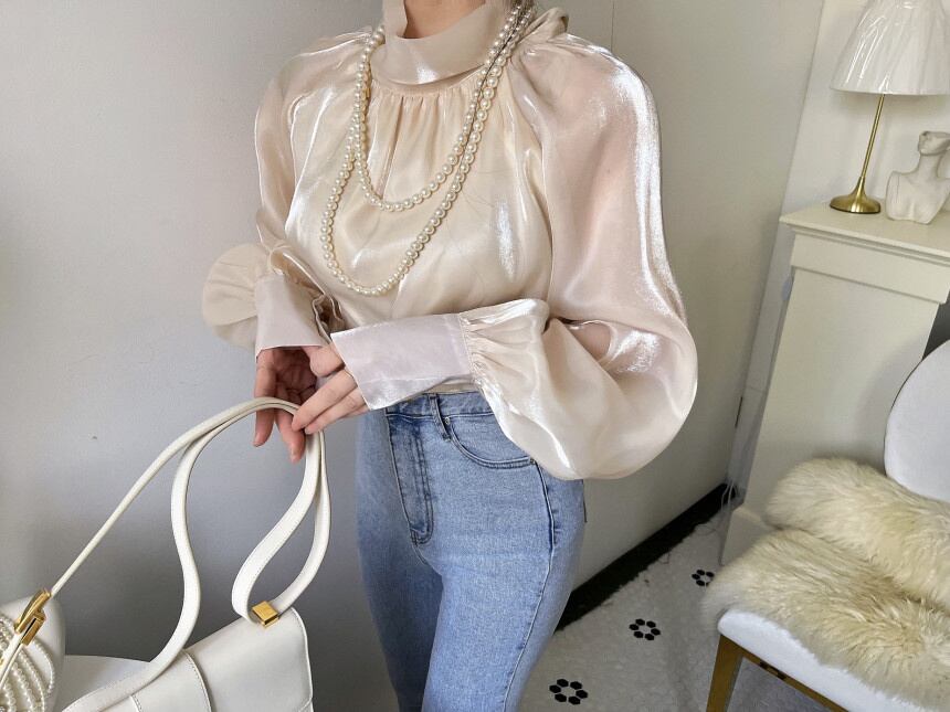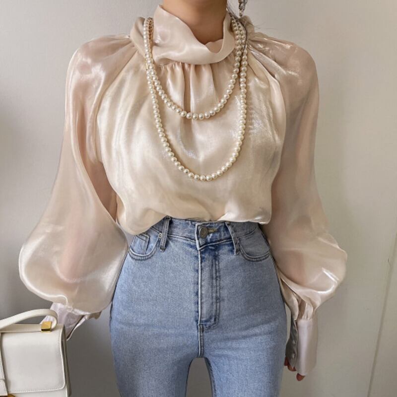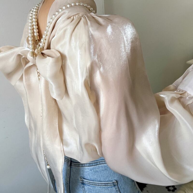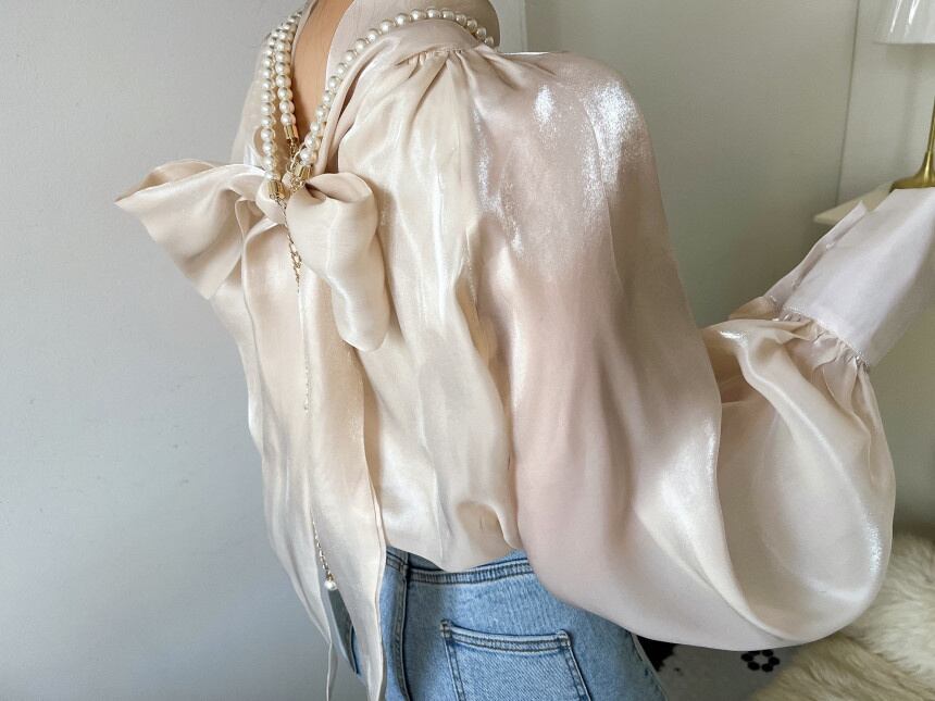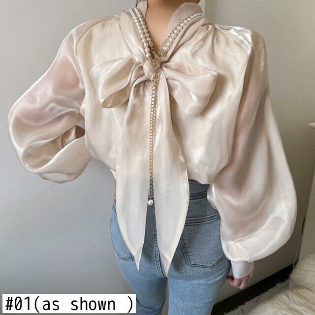 [EWQ] ソフトネック リボン レースアップ シャツ レディース 長袖 シフォン トップス 春秋トップス 16Y6682 ロング スプリング 春物 オータム 秋物