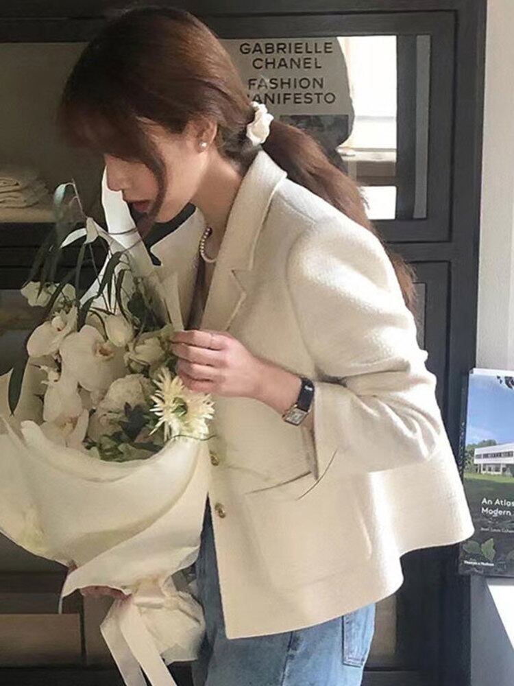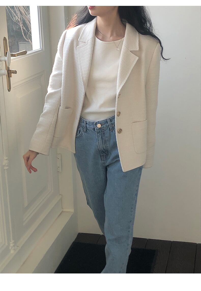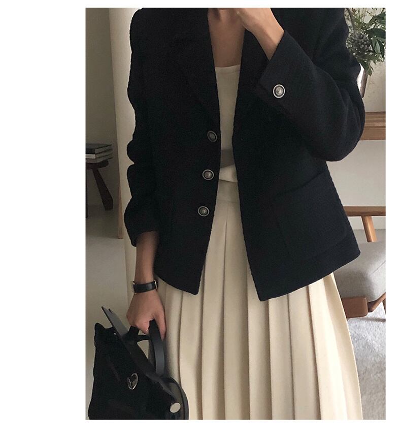 [EWQ] 3 つボタンノッチ オフィス レディー ブレザー ルーズ コート春秋トレンド黒トップ シックスーツ ブラック スプリング 春物 オータム 秋物 会社 学校 通勤や通学にも
