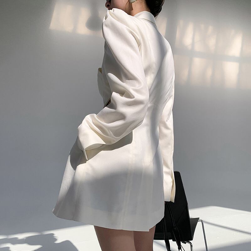 [EWQ] ブレザーノッチグリーン長袖中空アウトストレートブレザー春秋オフィス服 ロング スプリング 春物 オータム 秋物 会社 学校 通勤や通学にも