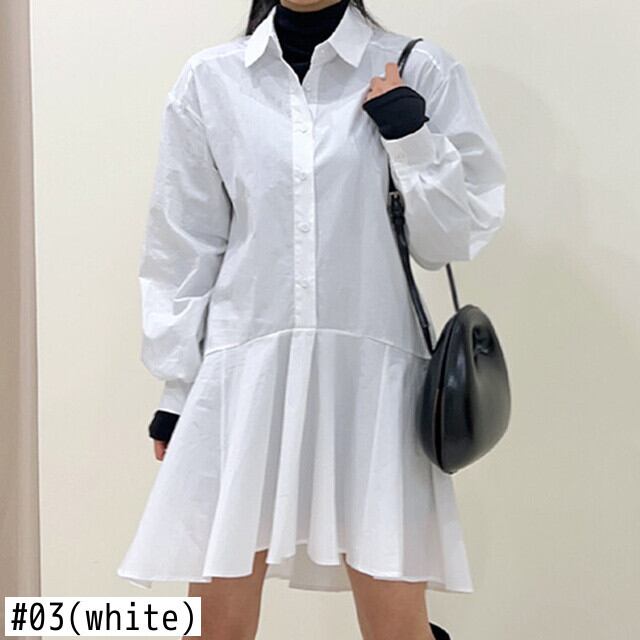 [EWQ] フリルスプライシングシャツミニドレス春秋ターンダウン襟シングルブレストブルードレス Y5738 ラッフル スプリング 春物 オータム 秋物