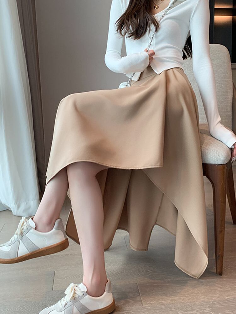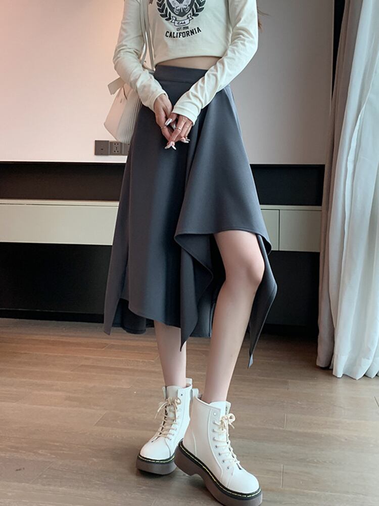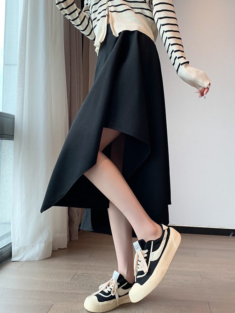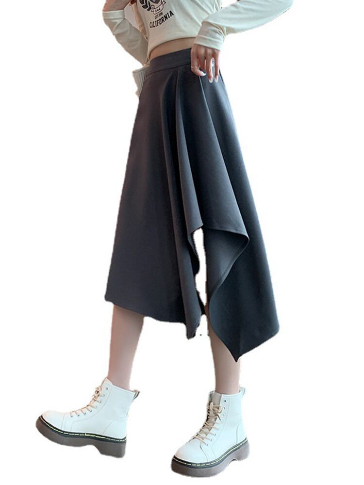 【EWQ】 イレギュラースカート レディース 春 秋 ウエスト ゆったり ミディ ややストレッチ スカート 10AB53 スプリング 春物 オータム 秋物