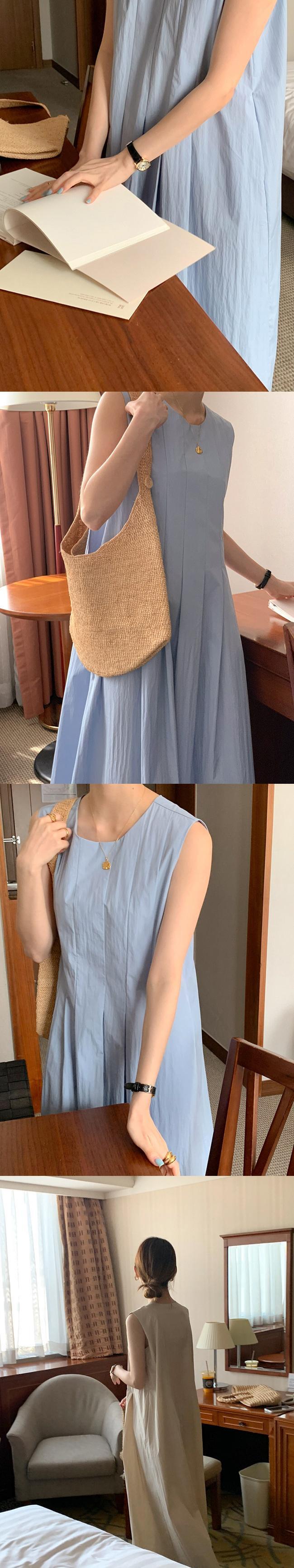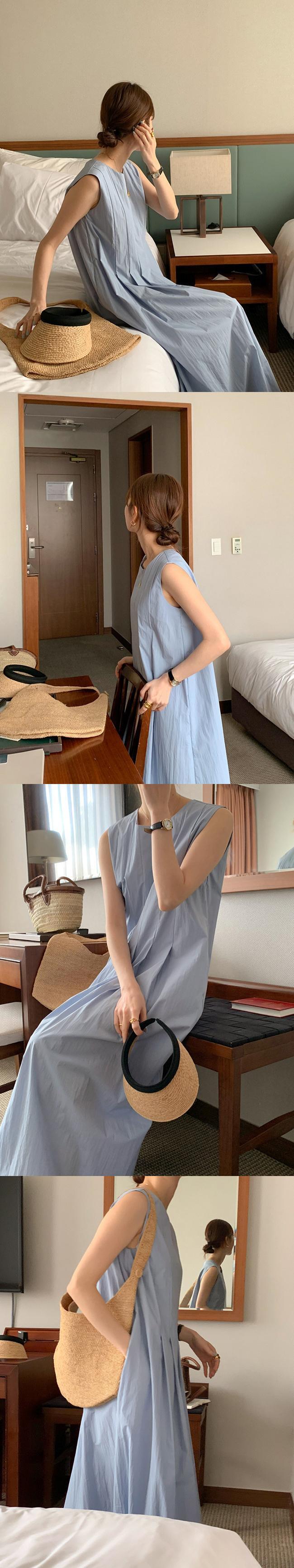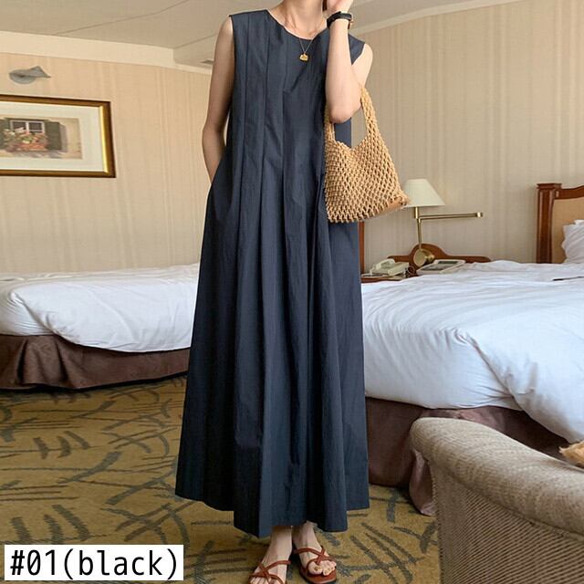 [EWQ] ミニマリスト プリーツ ウエスト ベスト ドレス ルーズ ノースリーブ ジッパー ドレス 夏潮 Vestido Y7557 サマー 夏物