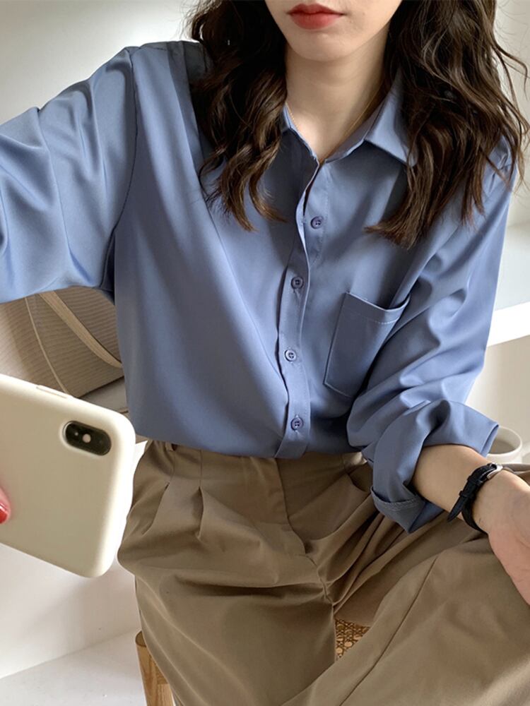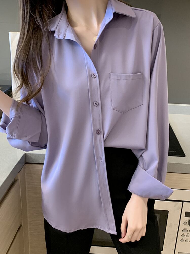 [EWQ] レディース シンプル シングルブレスト シャツ ラップル 長袖 パープル トップス 春 秋 ゆったり ブラウス 16Y7327 ロング スプリング 春物 オータム 秋物