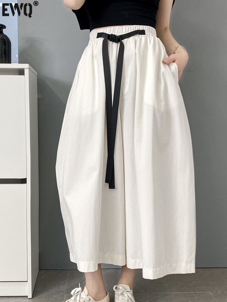 【EWQ】ウエストワイドレッグストレートズボンベルト弾性ブラックルーズパンツ春夏トレンド16Y59 エラスティック 伸縮 スプリング 春物 サマー 夏物 ハーネス ワイドパンツ