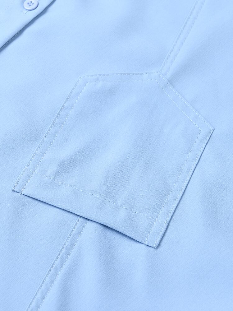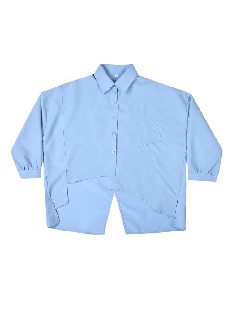 [EWQ] 春不規則スプリットバックシャツルースブラウス長袖シングルブレストブルーフェイクポケットトップス ロング スプリング 春物