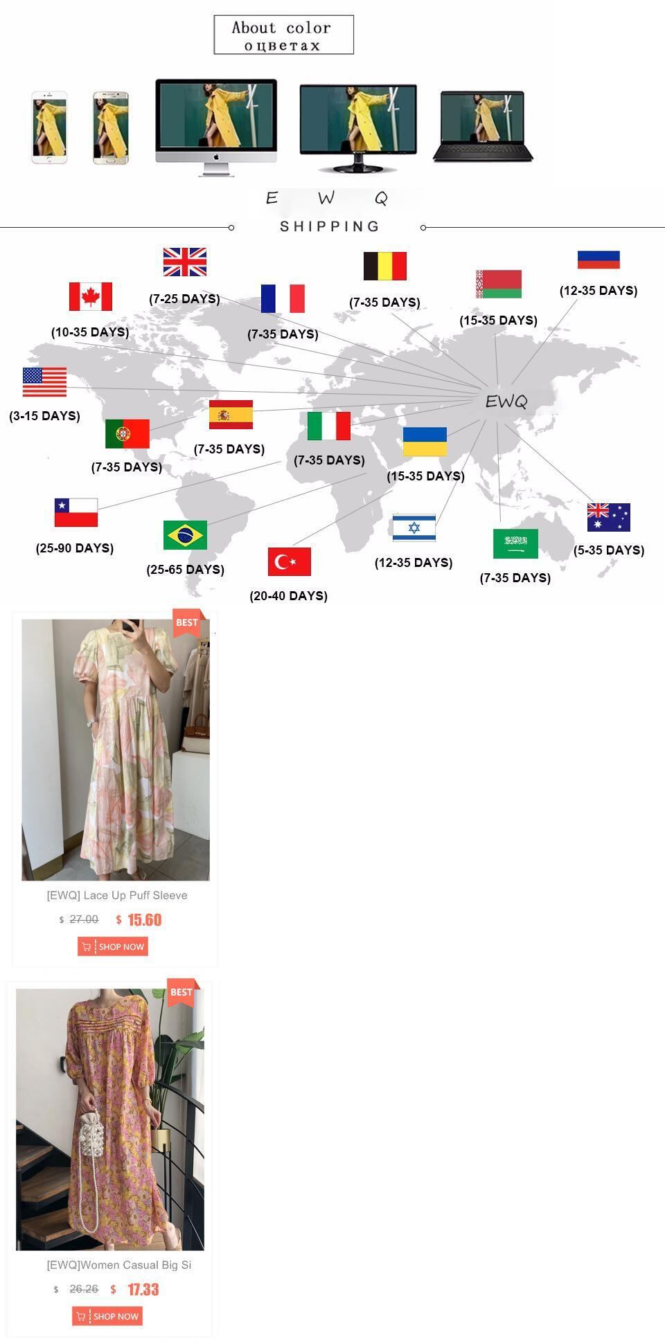 【EWQ】春ゆったりターンダウンカラー無地シングルブレストパフスリーブミニマリストプリーツAラインワンピ スプリング 春物 ソリッドカラー