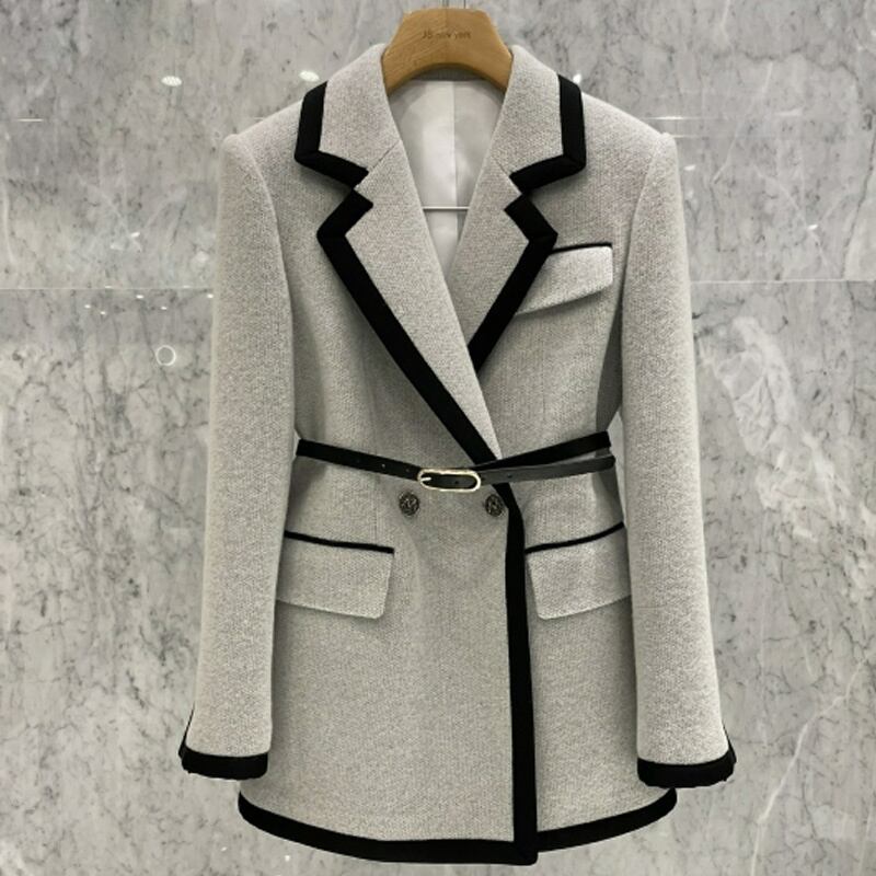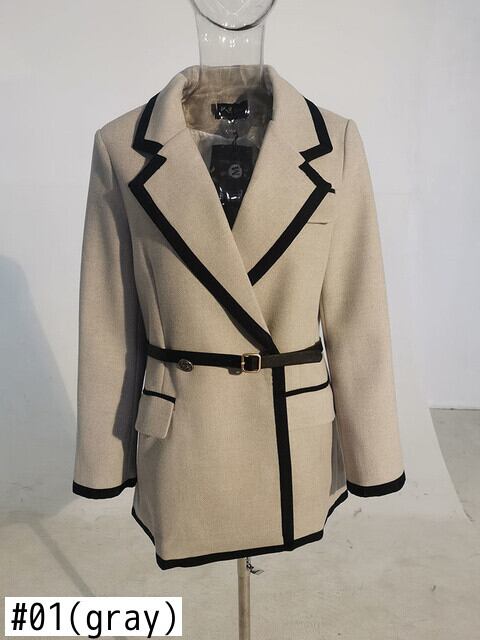 【EWQ】ウール ブレザー コート ノッチ 長袖 厚手 コントラストカラー アウター 春 レディース 潮 ロング スプリング 春物