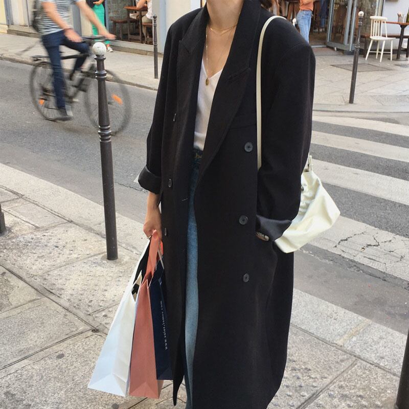 【EWQ】ブラック スーツコート レディース ミディアム丈 春 秋 ルーズ シック ブレザー ジャケット 16E4933 スプリング 春物 オータム 秋物
