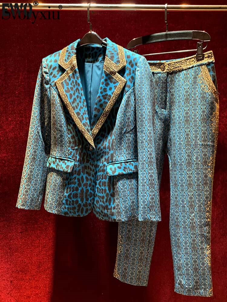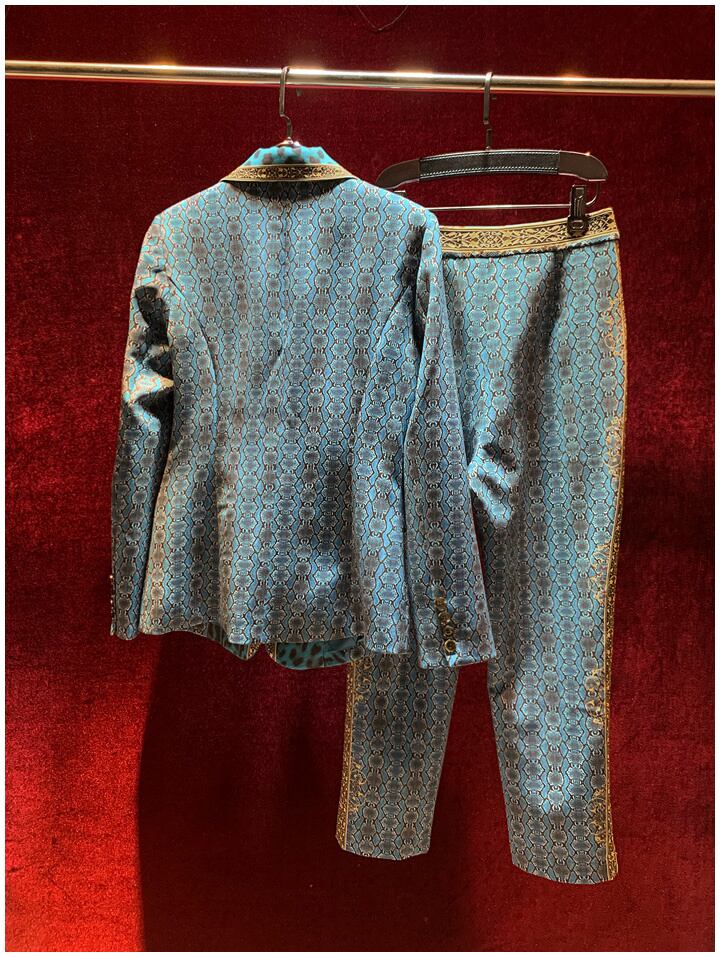 [EWQ] 春秋プリント ズボン スーツラペル シングル ボタン ブレザー コート + ウエスト ペンシル パンツ スプリング 春物 オータム 秋物