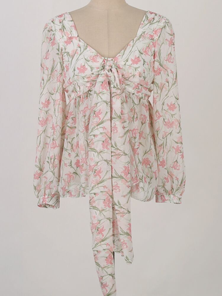 [EWQ] レディース プリント シフォン シャツ コントラスト ロングスリーブ ホルター トップ 春 秋 シャツ トップス 長袖 スプリング 春物 オータム 秋物
