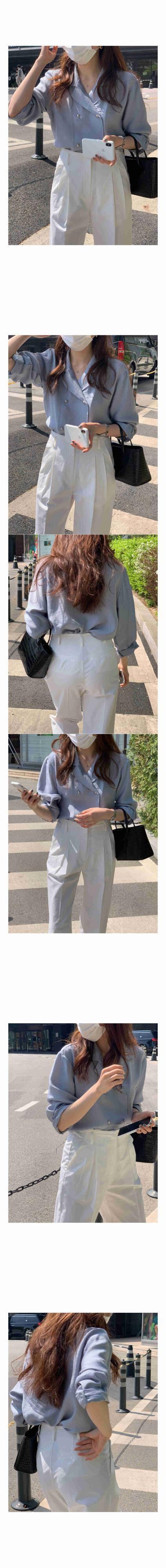 [EWQ] ダブルブレストルーズシャツ長袖無地トップ春秋ブラウストップス 7219 ロング スプリング 春物 オータム 秋物 ソリッドカラー