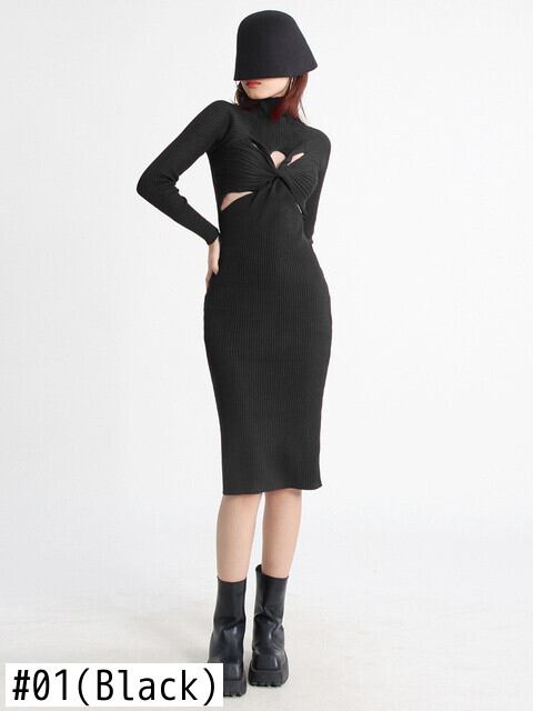 [EWQ] イブニング パーティー ニット ドレス クロス中空アウト セクシーセーター Vestido ドレス春秋 Rode 16Y6396 スプリング 春物 オータム 秋物
