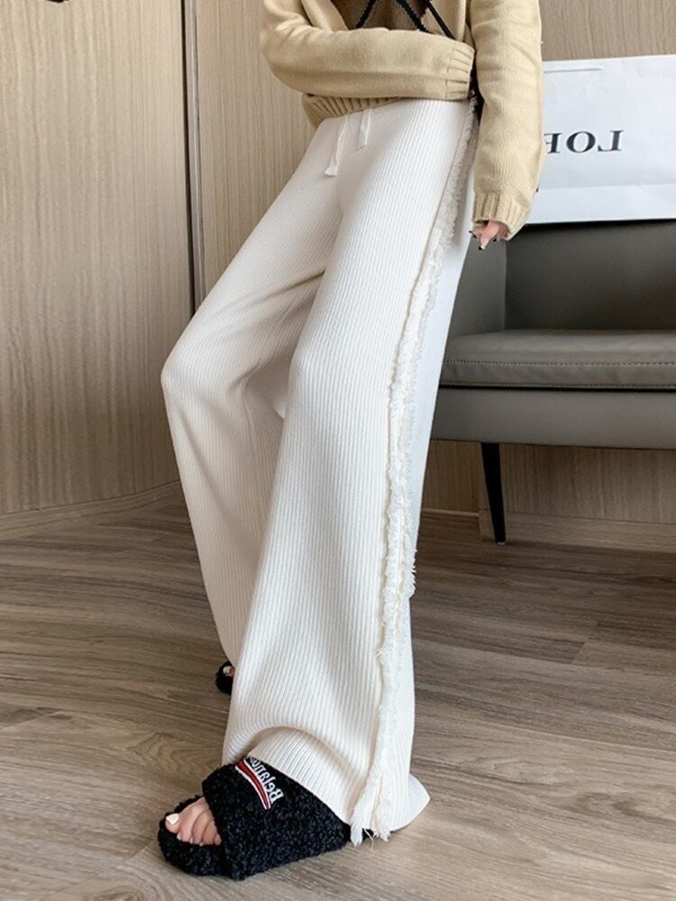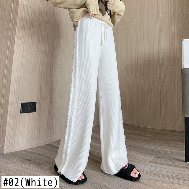 [EWQ] 肥厚白テルスプライスニットワイドレッグパンツ春冬ウエスト巾着ルーズパンツ ホワイト スプリング 春物 ウィンター 冬物 ワイドパンツ