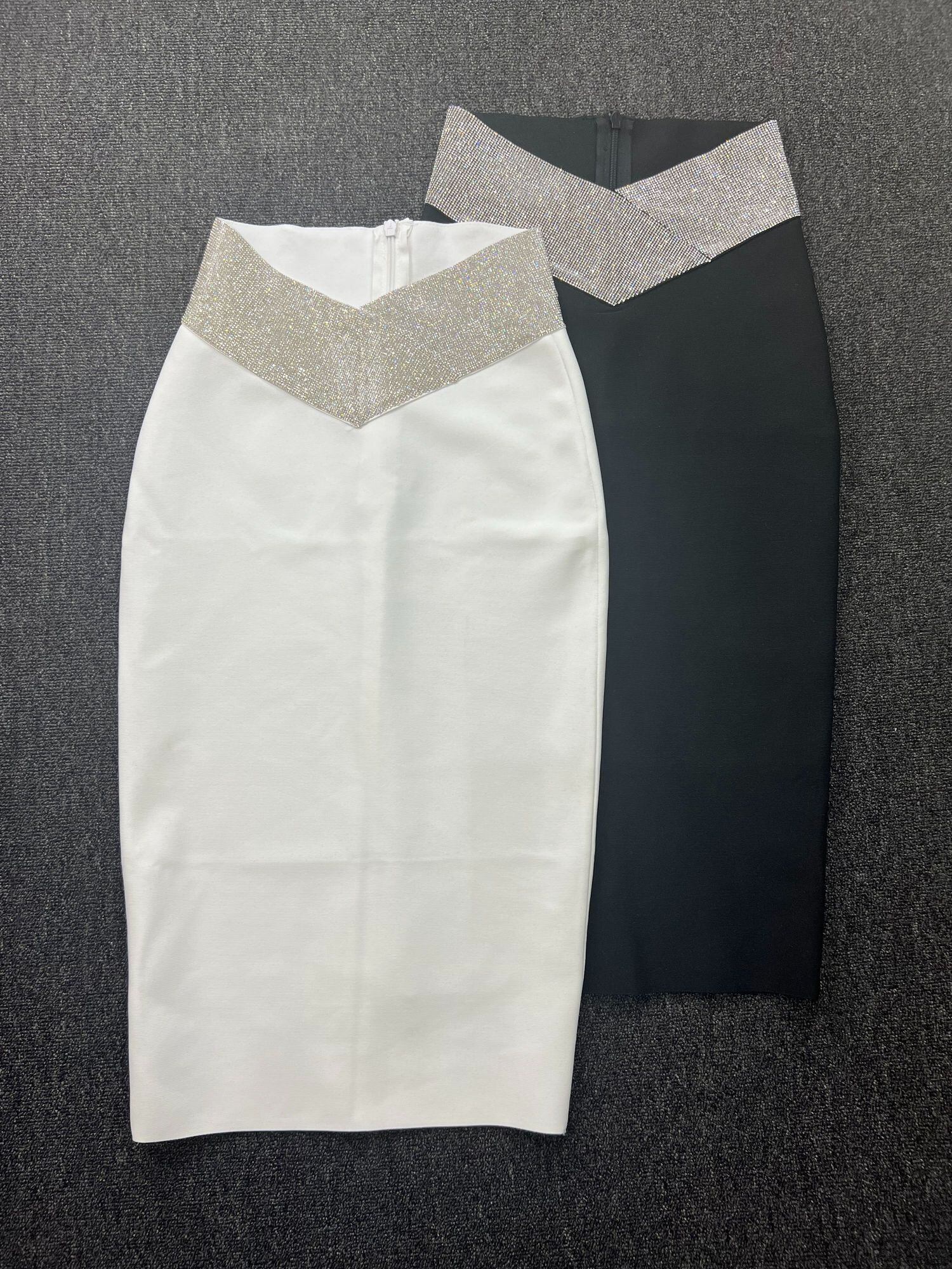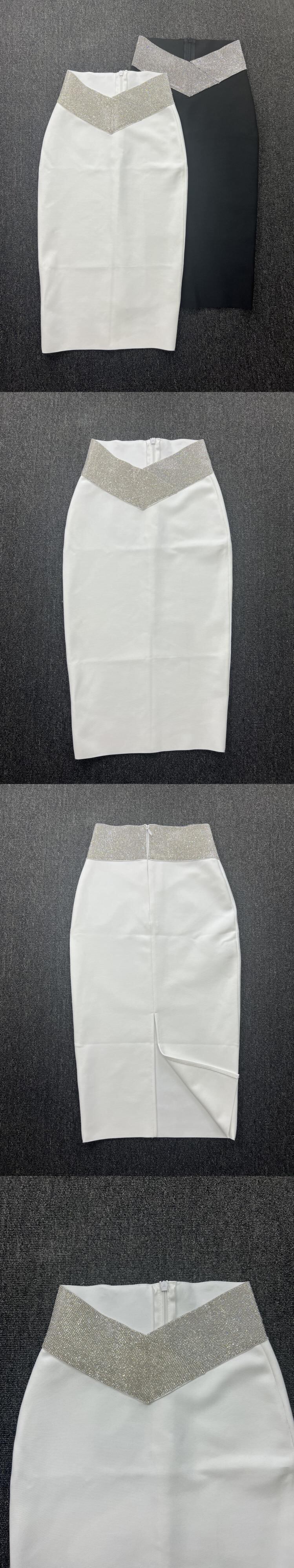 【EWQ】ホワイト ブラック ボディコン ミディ バンデージ スカート ウエスト パーティー クラブ ペンシル スカート 77cm 16Y755900