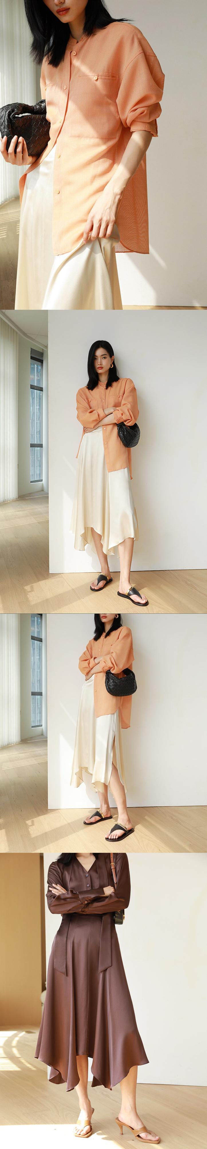[EWQ] 長袖レースアップシャツ+イレギュラーAラインウエストスカート2点セット春夏潮スーツ 16Y5869 ロング スプリング 春物 サマー 夏物