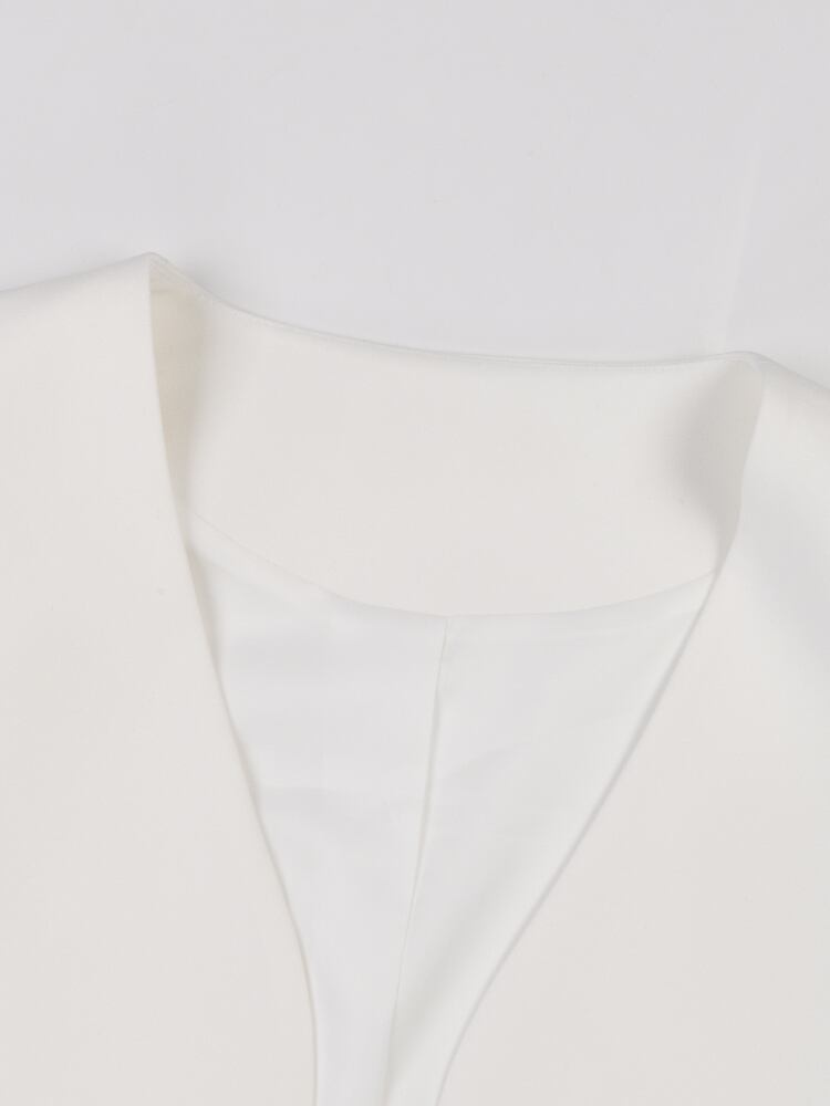 【EWQ】白ジャケット サマータイド トップス オーバーコート レディース ブレザー Vネック ルーズウエスト つぎメッシュ 長袖スーツ ロング ホワイト 夏物