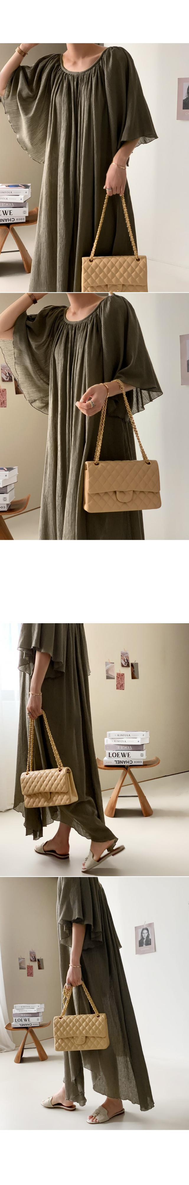 [EWQ] o ネック プリーツ ドレスゆるい無地フライ スリーブ マキシ ドレス夏潮 Vestido 6Y7769 サマー 夏物 Oネック ソリッドカラー