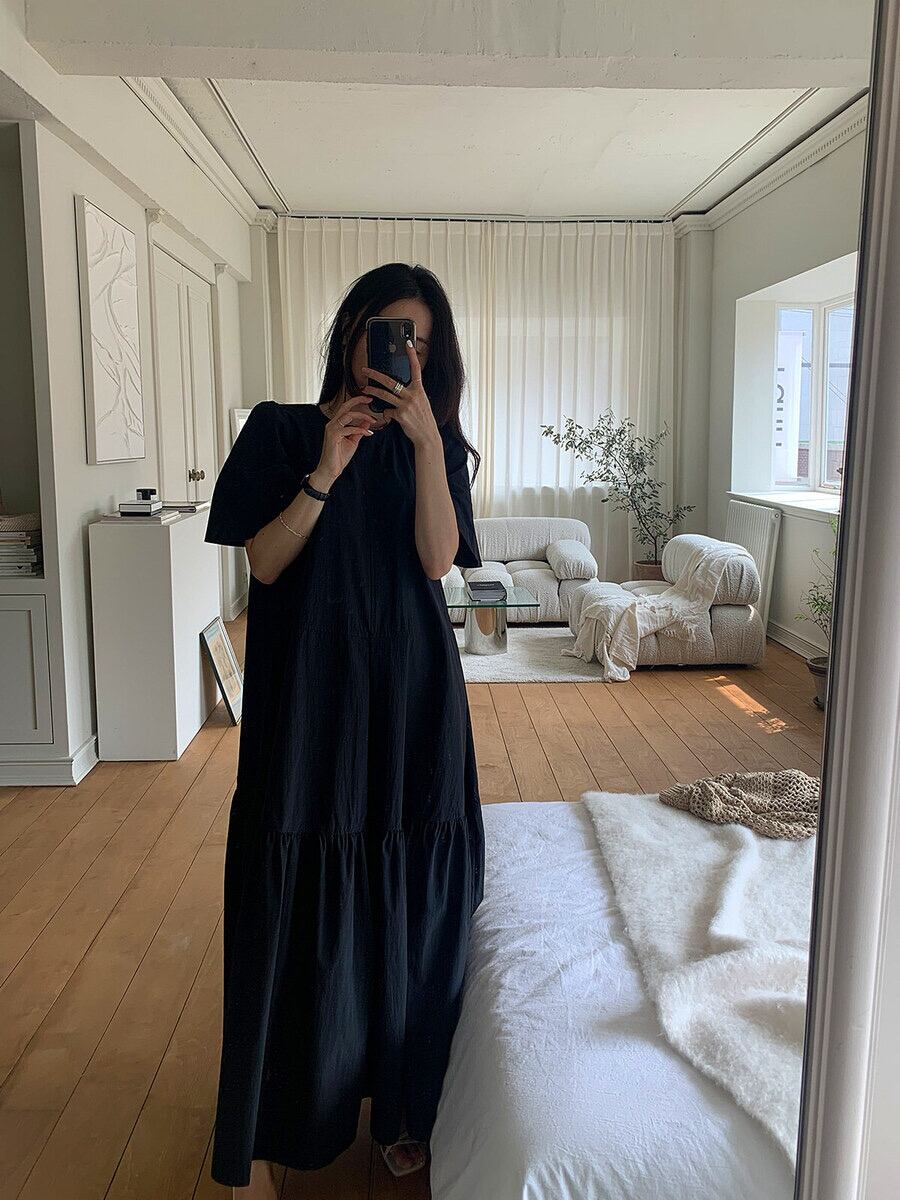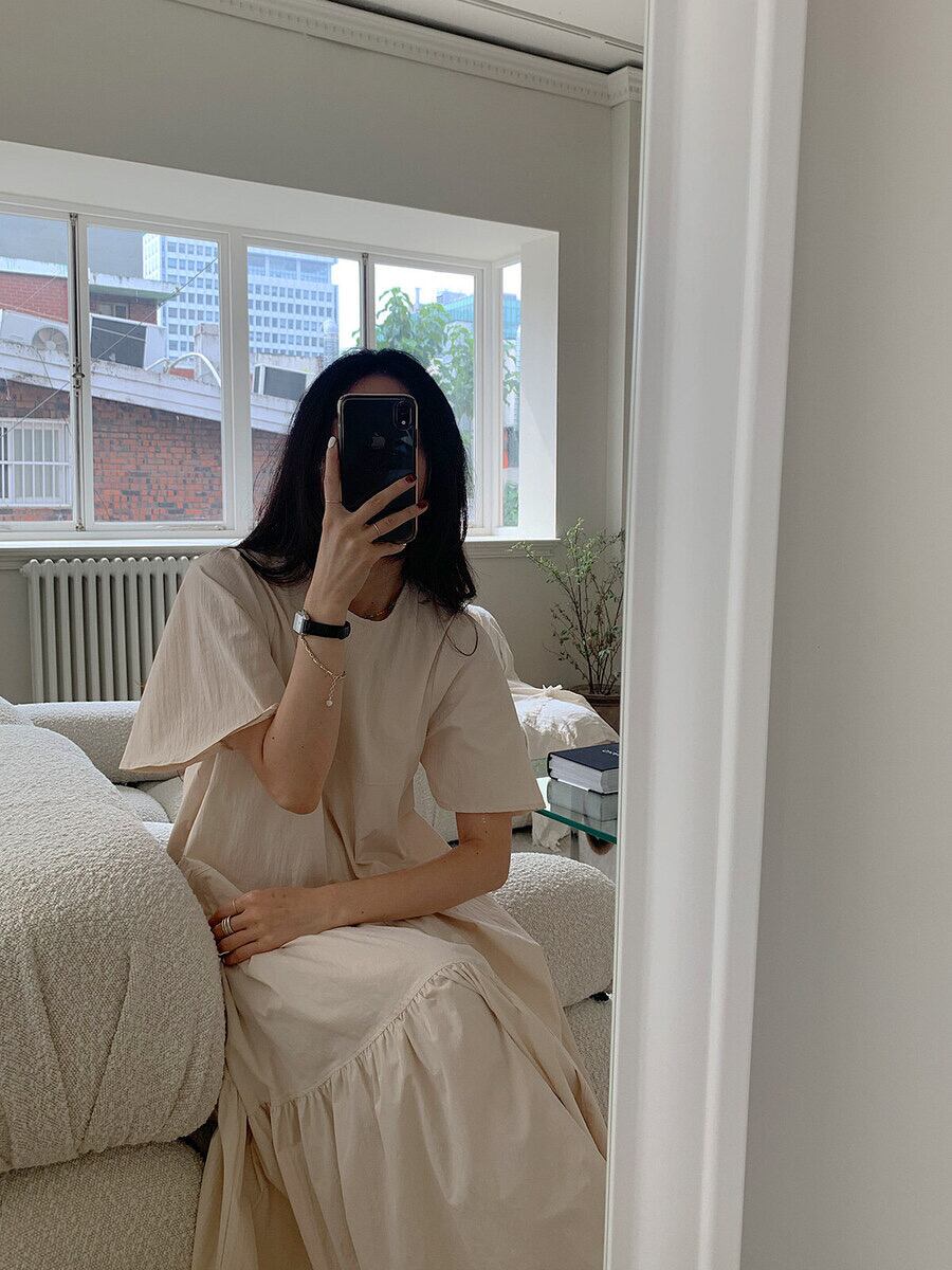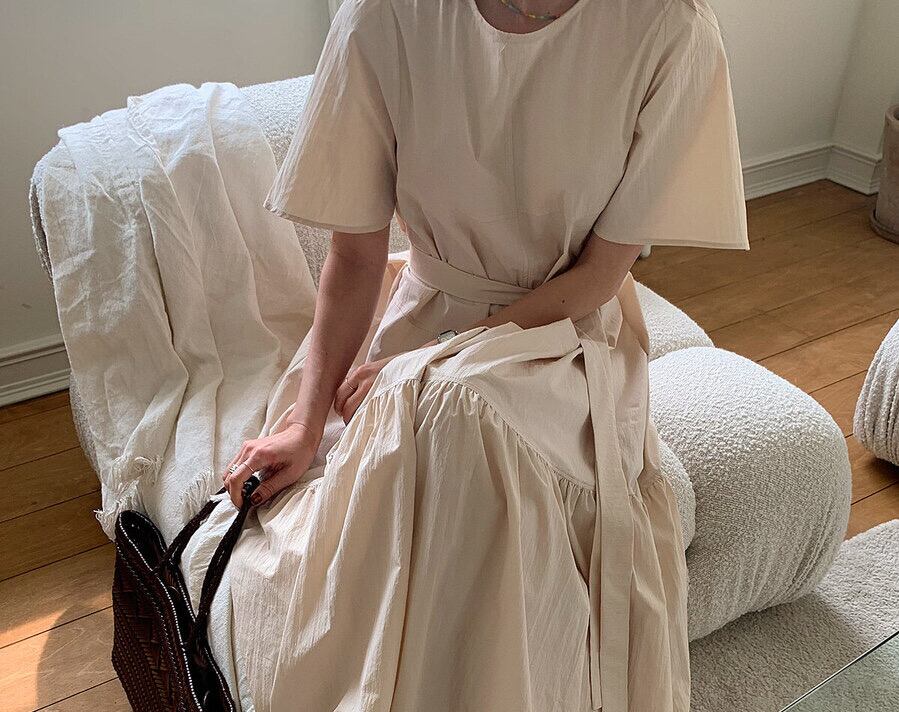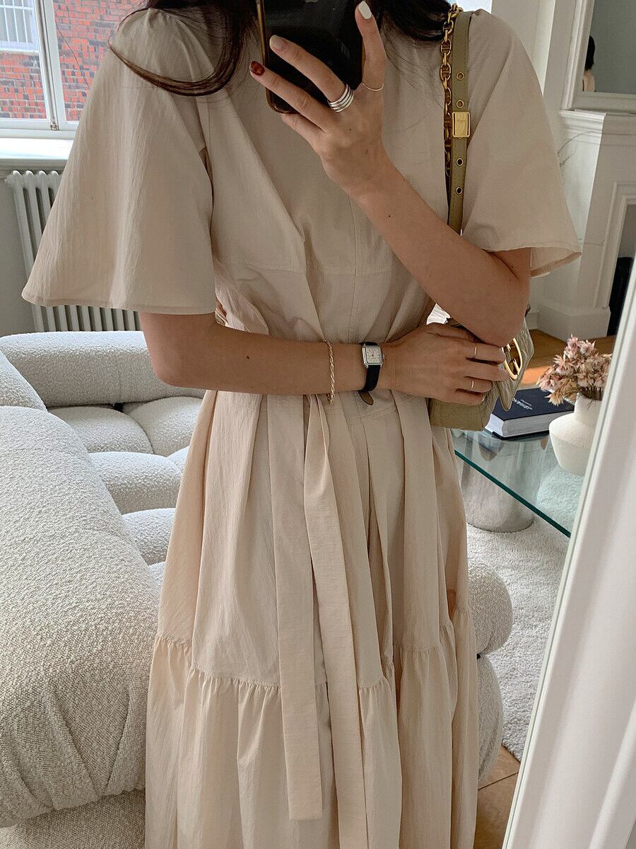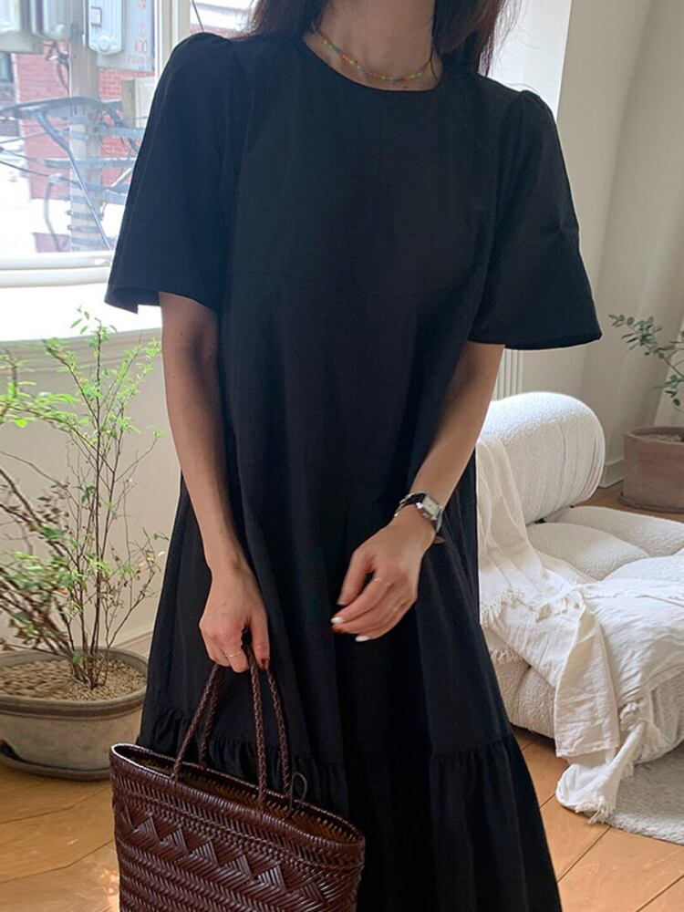 [EWQ] レディース シンプル Oネック レースアップドレス 半袖 ゆったり カジュアル フリル スプライスドレス 夏潮 Vestido 963 ショート ハーフスリーブ サマー 夏物