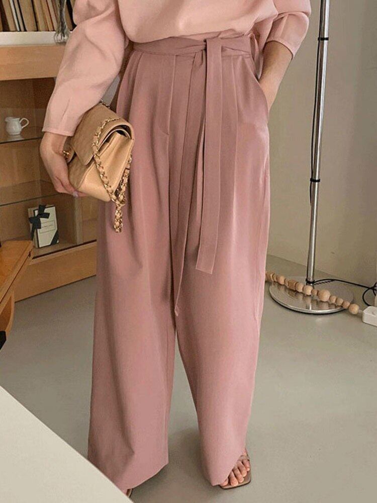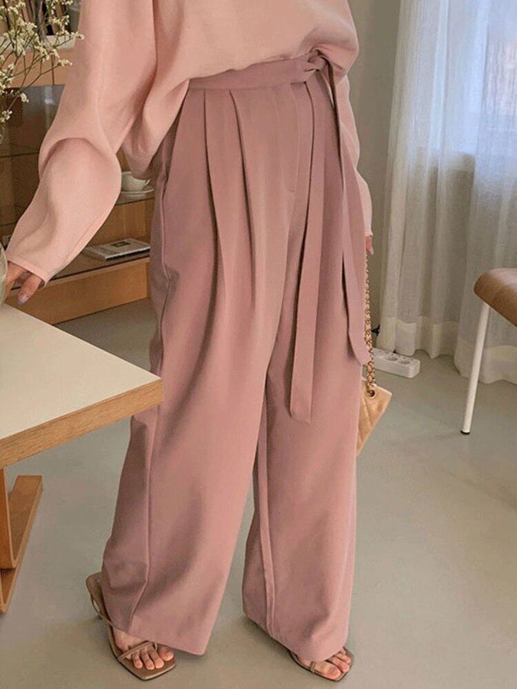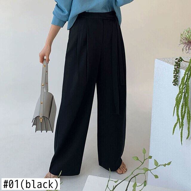 [EWQ] レディース ウエストレースアップ スーツパンツ 無地 ルーズポケット ワイドレッグパンツ 春夏服 104 スプリング 春物 サマー 夏物 ワイドパンツ ソリッドカラー