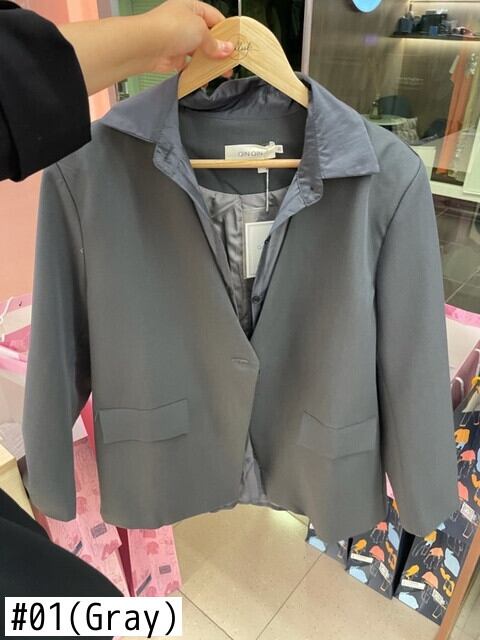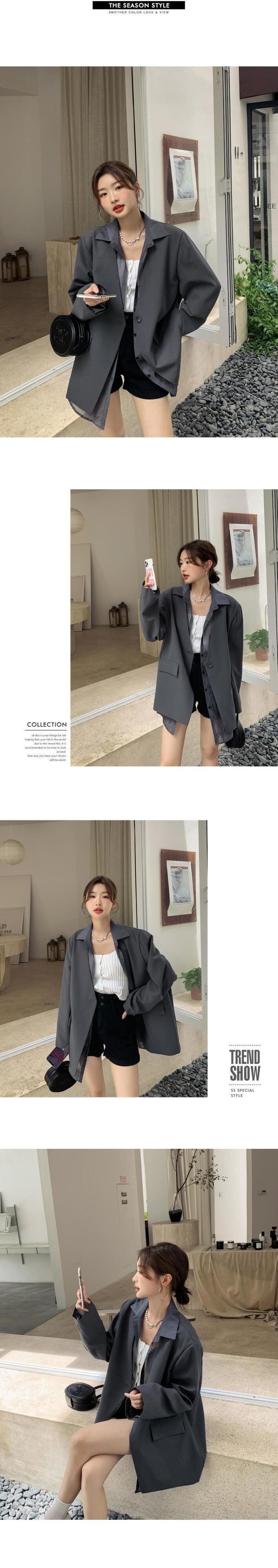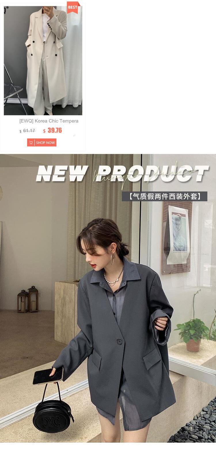 【EWQ】長袖 ステッチ フェイクツーピース オフィススーツ シック グレー ブレザー ルーズ コート 春 春 ロング スプリング 春物 会社 学校 通勤や通学にも
