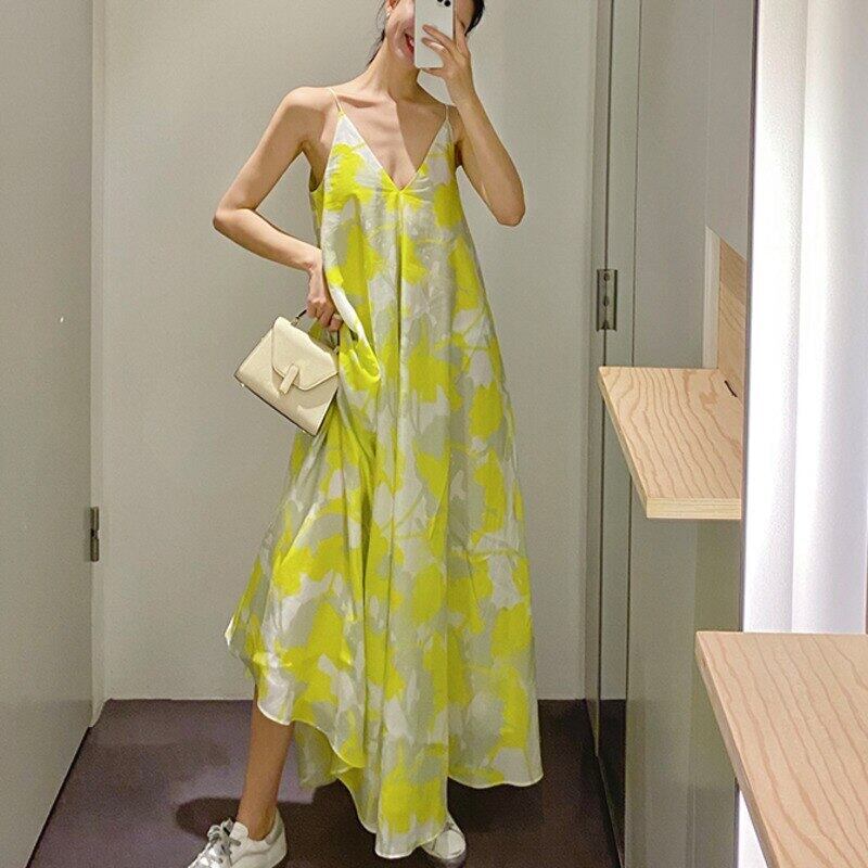 [EWQ] シック夏トレンディ V ネック プリント ホリデー スタイル ノースリーブ スリング ドレス 16E2243 サマー 夏物 Vネック