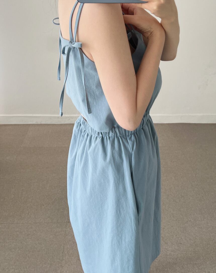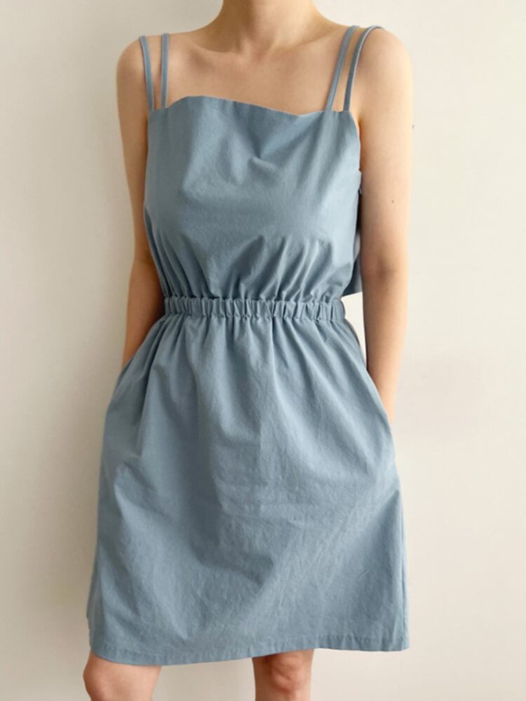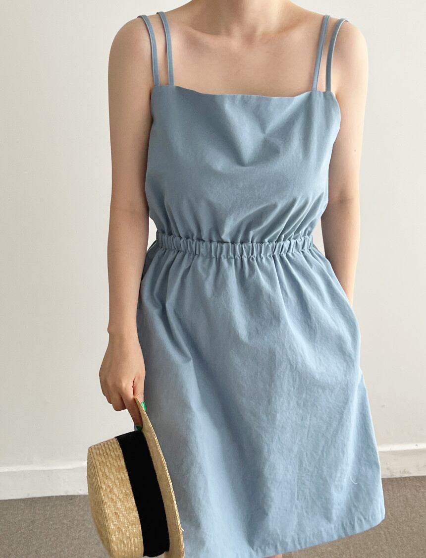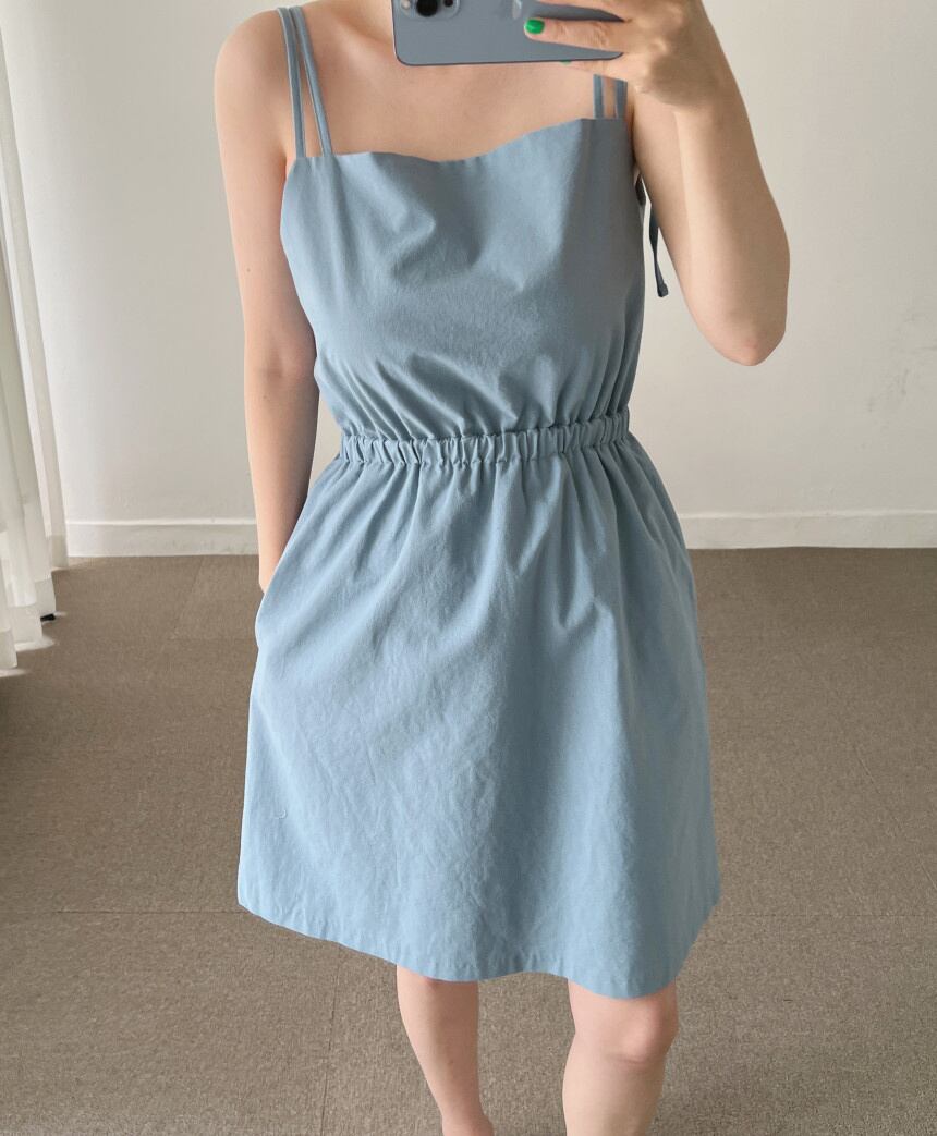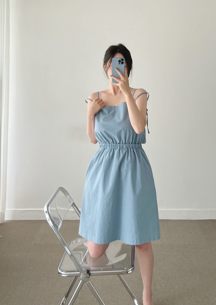 [EWQ] レディース スクエアネック 中空バック スリングドレス プリーツ ウエストパフショルダー ノースリーブ ミニドレス 夏潮 890 サマー 夏物 スクウェア