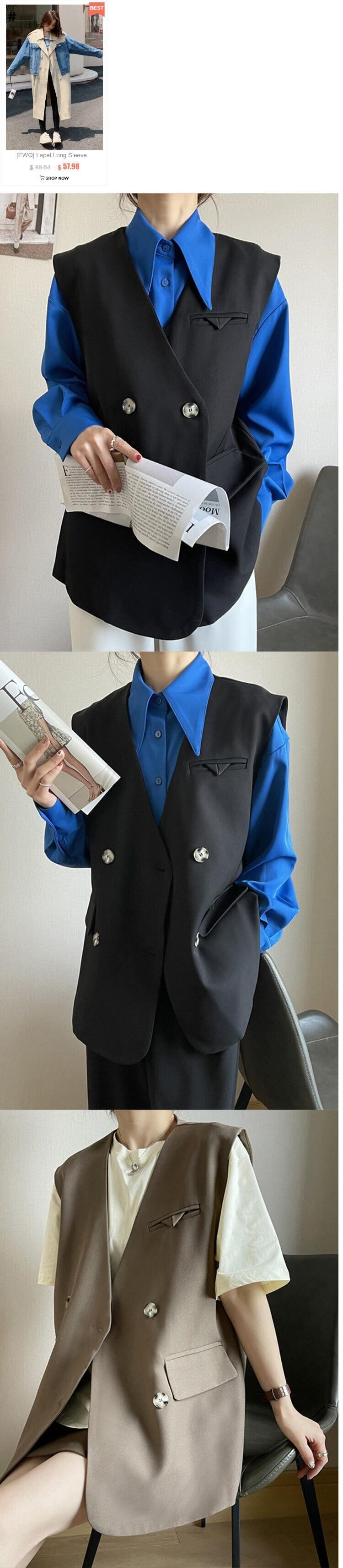[EWQ] レディース コート ブラック ダブルブレスト シック オフィス レディ スーツ ベスト ルーズ チョッキ 春 夏 タイド トップ 16Y5 スプリング 春物 サマー 夏物 会社 学校 通勤や通学にも