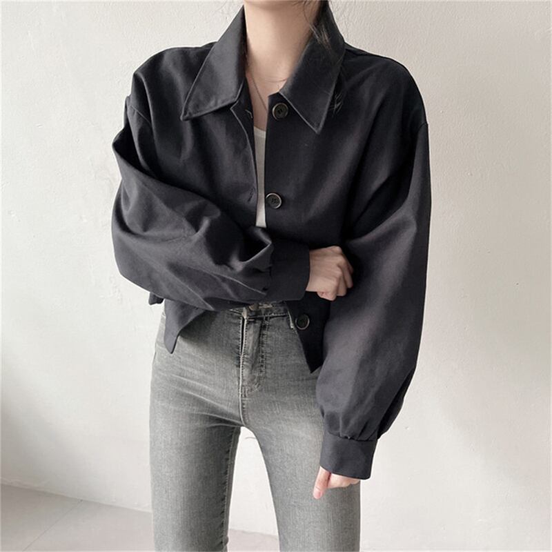 [EWQ] シックソリッドコートラペルルーズフルスリーブ秋ストリートショートジャケットコート 16E3344 オータム 秋物 ソリッドカラー