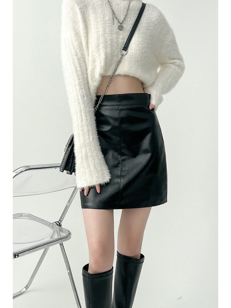 [EWQ] PU レザー ブラック ミニ スカート スリム ウエスト A ライン ショート スカート 春夏 -高品質ファルダ スプリング 春物 サマー 夏物 Aライン