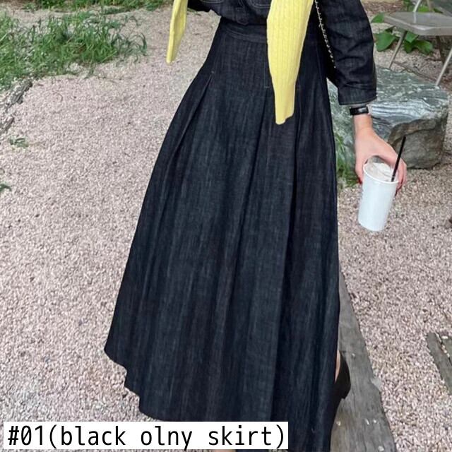 [EWQ] シングルブレストデニムシャツ + ウエスト A ラインスカートツーピーススーツ春秋セット 6Y7250 スプリング 春物 オータム 秋物 Aライン