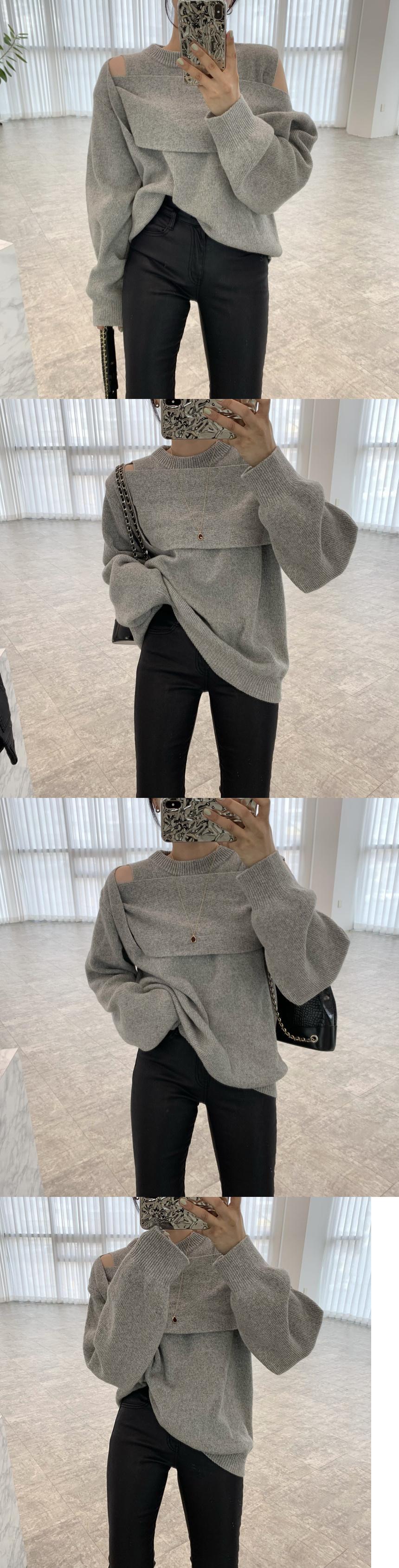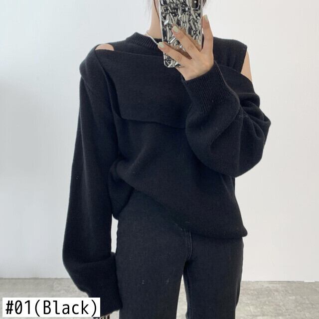 [EWQ] シックゲイリー O ネック重ね着中空アウトルーズ ニット プルオーバー セーター秋春 16R888 スプリング 春物 オータム 秋物 Oネック