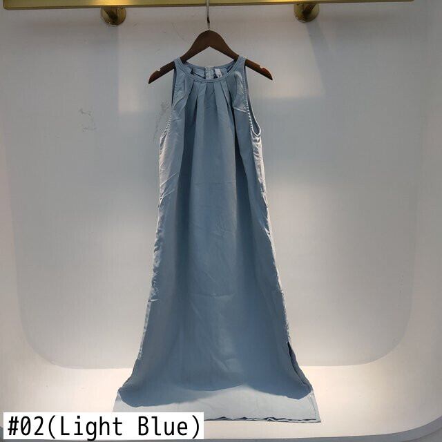 [EWQ] シック トレンド レディース Oネック ストラップレス レースアップ シンプル スリット ノースリーブ スリングドレス 夏 16E1910 サマー 夏物