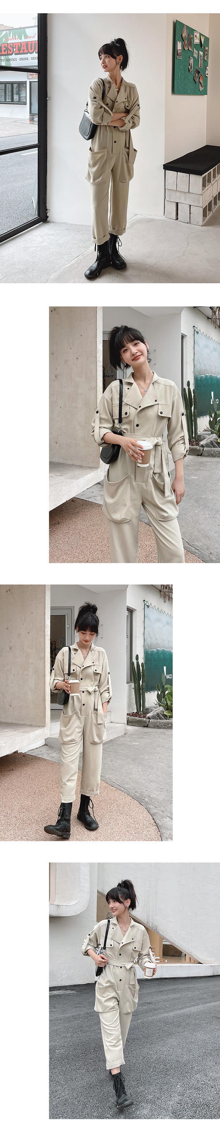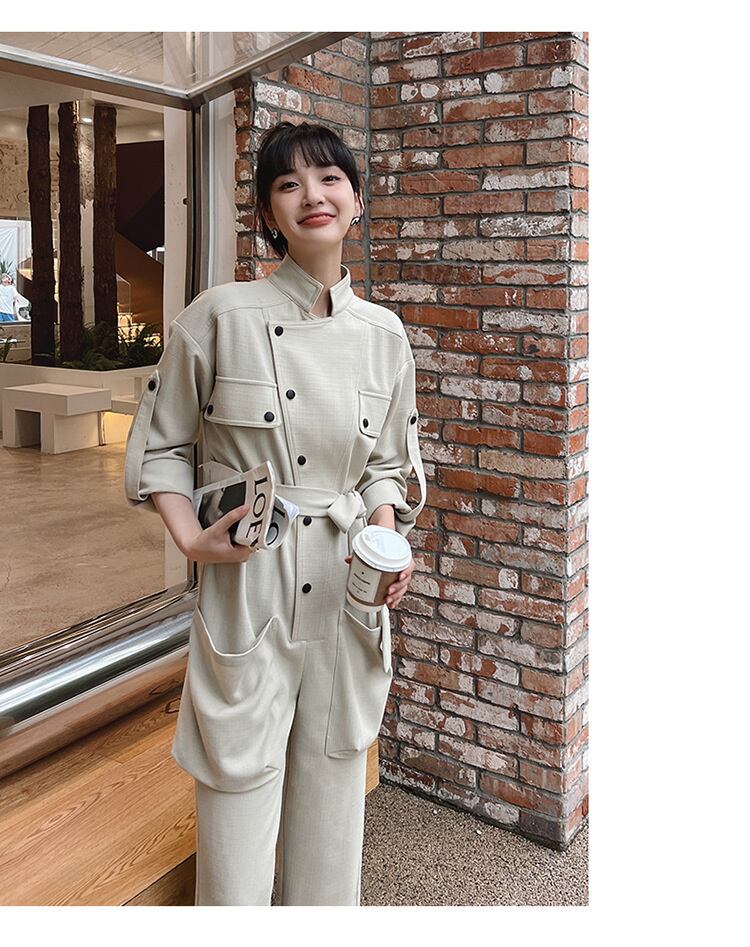 [EWQ] ジャンプスーツストリート長袖包帯スタンドカラーワンピースパンツセットオーバーオールロンパース春秋 ロング スプリング 春物 オータム 秋物