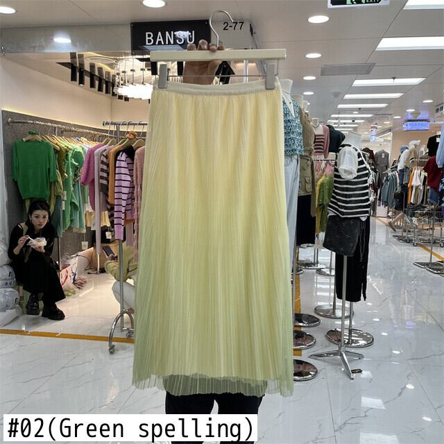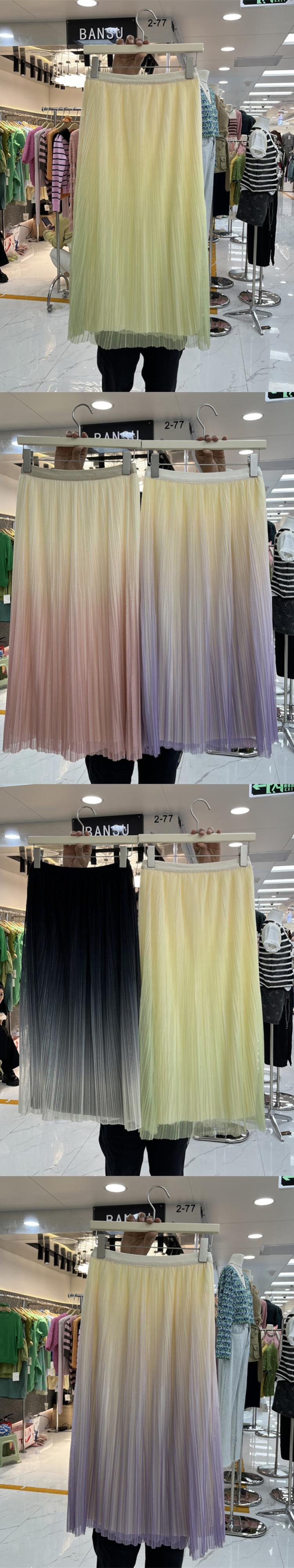 [EWQ] 美しいグラデーション プリーツ スカート メッシュ スプライス コントラスト カラー ミッドカーフ スカート 春夏 16Y7859 スプリング 春物 サマー 夏物
