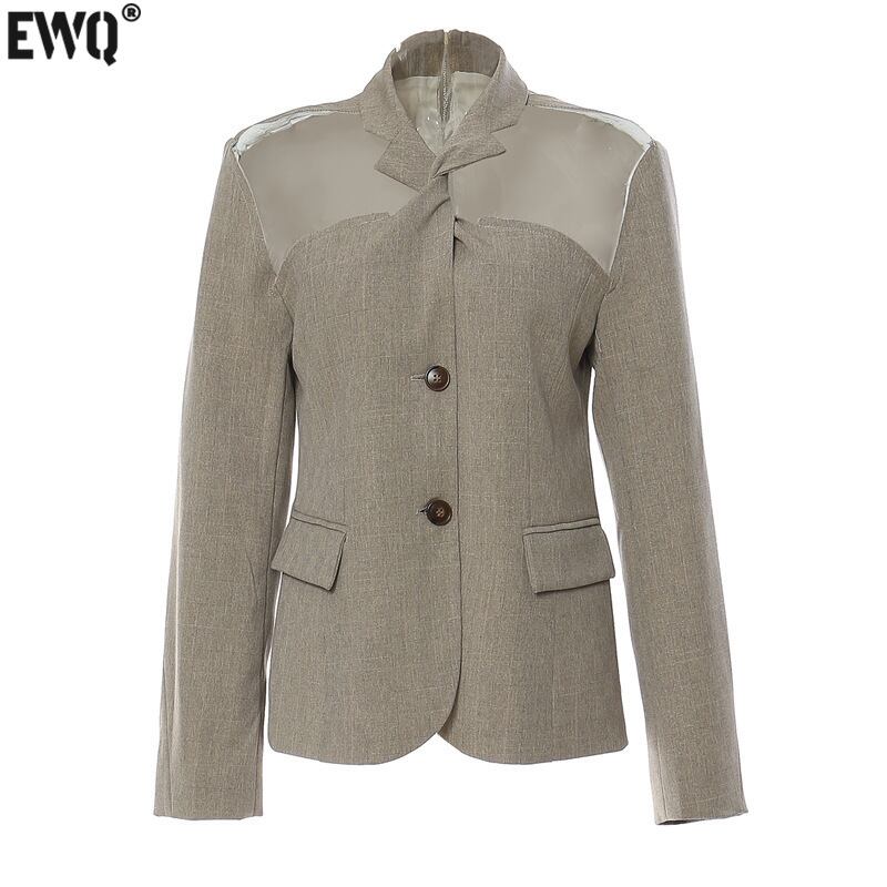 [EWQ] 中空不規則ジャケットコートクロスカラージッパーポケットスプライシングジャケット春秋トップス 6189 スプリング 春物 オータム 秋物
