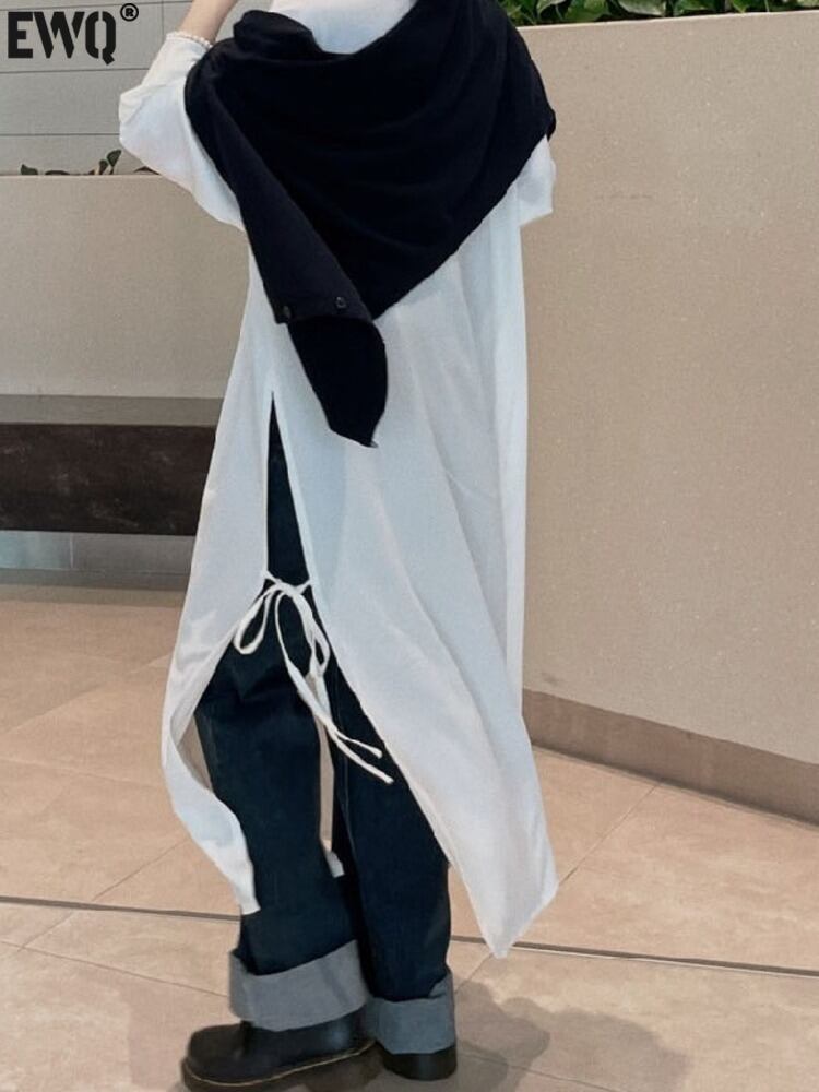 [EWQ] ミニマリストスプリットレースアップドレスハーフカラービーチ Vestido ドレス春夏トレンド因果乗り Y6416 スプリング 春物 サマー 夏物