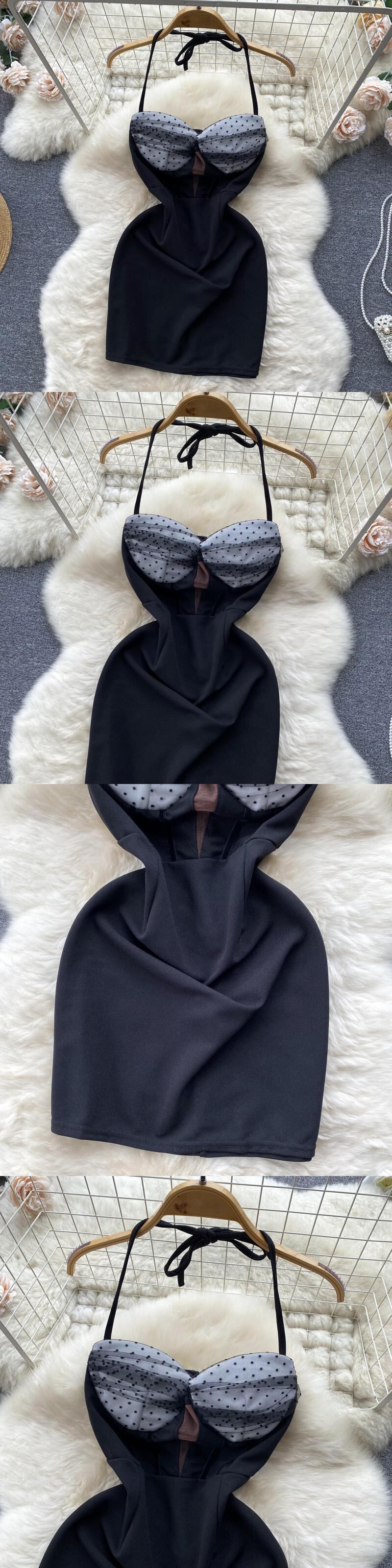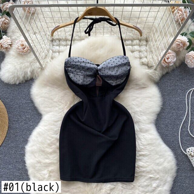 [EWQ] セクシーメッシュパッチワークスリングドレスコントラストノースリーブ Silm 赤ドレス春夏ミニ Vestido レッド スプリング 春物 サマー 夏物