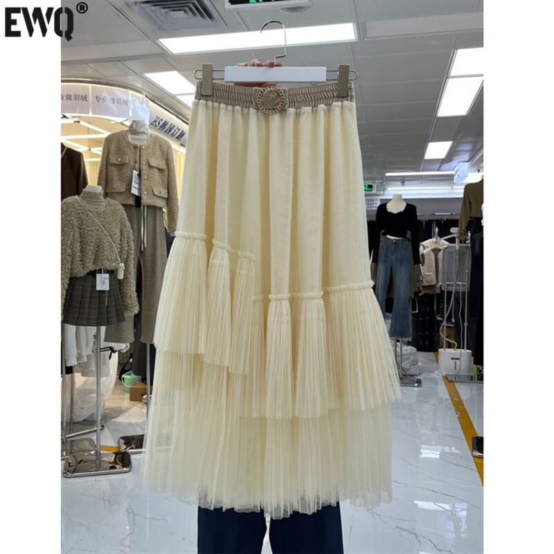 [EWQ] 不規則パッチワーク A ライン スカート弾性ウエスト メッシュ スプライシング スカート春夏パーティー ファルダス 6Y6266 エラスティック 伸縮 スプリング 春物 サマー 夏物 Aライン